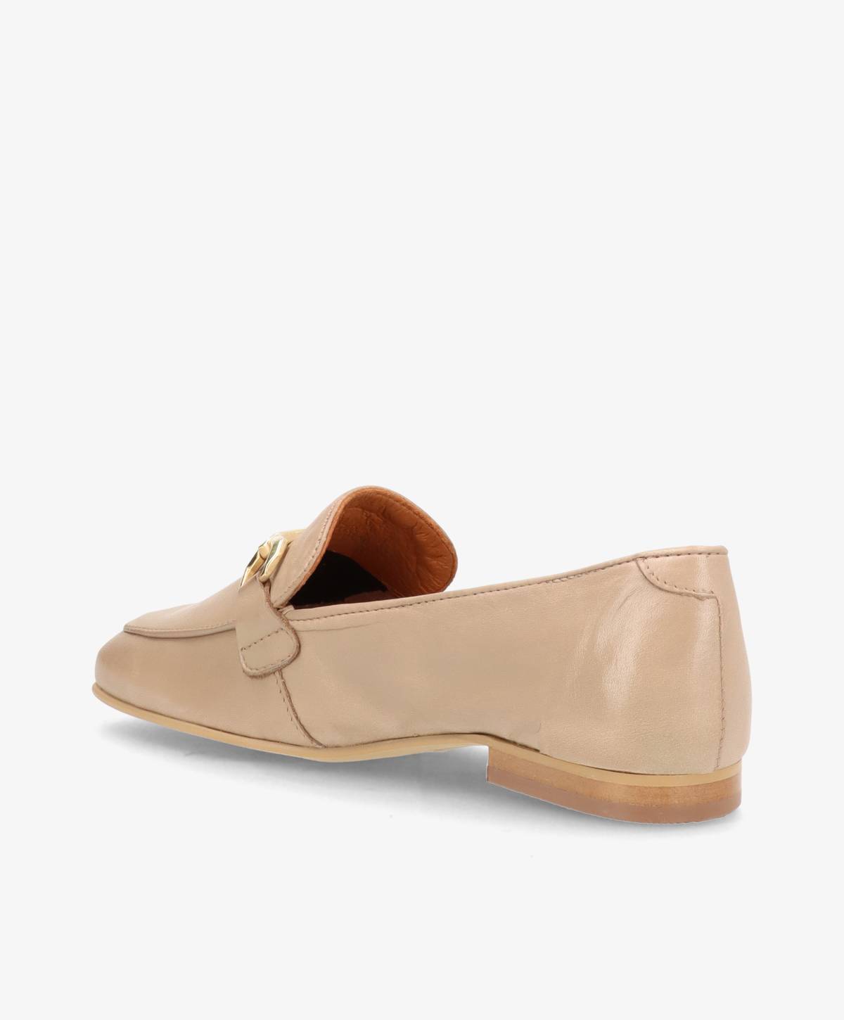 Klassiske og elegante skindloafers fra Shoedesign Copenhagen i en tidløs beige. De flotte loafers har et stilrent udtryk, der får et kontrastfyldt indspark med det flotte guldspænde på fronten. De har en spids snude, der runder en anelse og derfor er super behagelige. De fine loafers er nemme at påføre og sidder godt til på foden. Det klassiske udtryk gør dem super nemme at style til både fest og hverdag, og de kan bruges til et væld af outfits.