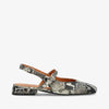 ASCEND A kombinerer klassisk slingback-design med et moderne slangepræget læderlook, der skiller sig ud. Den offwhite og sorte farvekombination giver et sofistikeret, men edgy udtryk, mens de sølvspænder og rene linjer tilfører lethed og elegance. Den lave hæl og bløde sål sikrer komfort hele dagen – perfekt til både hverdagsbrug og festlige anledninger.