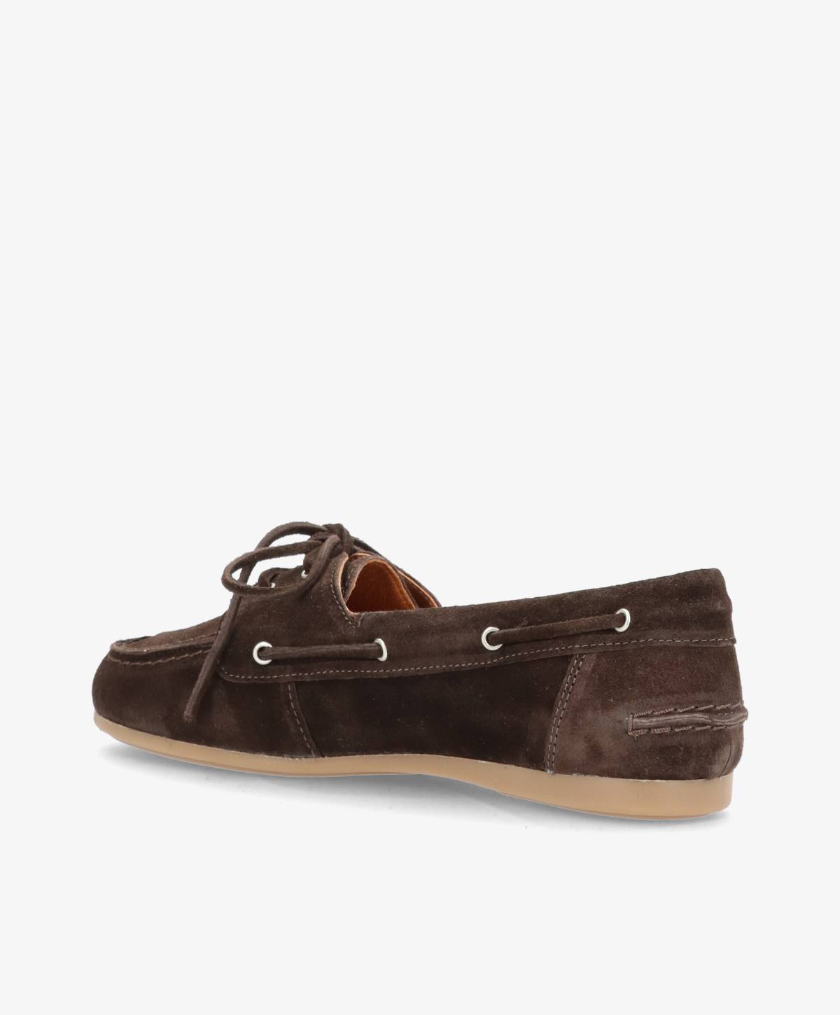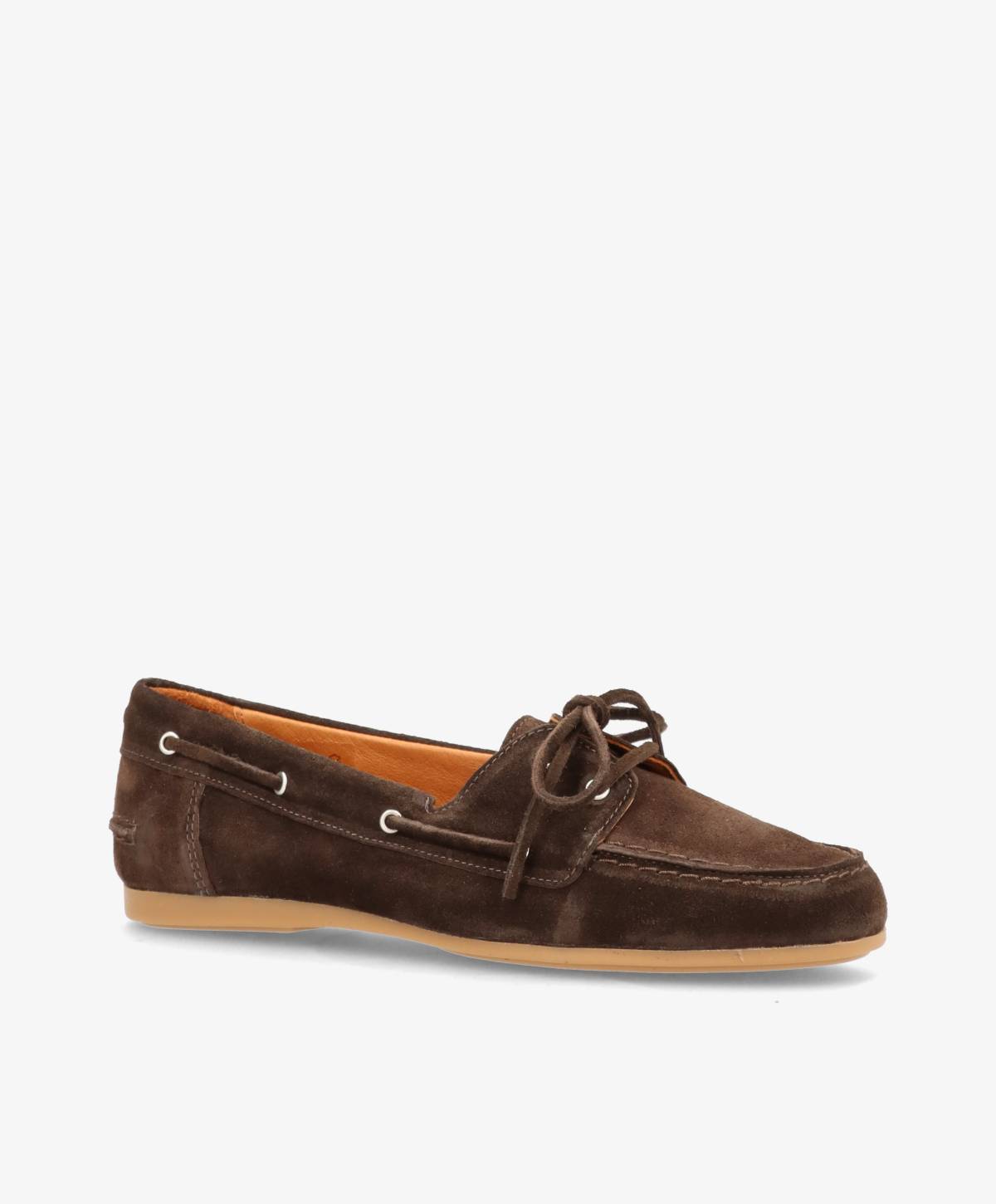 BEACON S fra Shoedesign Copenhagen er en klassisk og elegant sejlersko til dame med et tidløst og eksklusivt udtryk. Modellen er udført i mørkebrunt ruskind, som giver skoen et blødt og sofistikeret look. De fine snøredetaljer og den karakteristiske sejlersko-silhuet understreger det stilrene design og gør skoen ideel til både hverdag og mere afslappede, velklædte outfits.