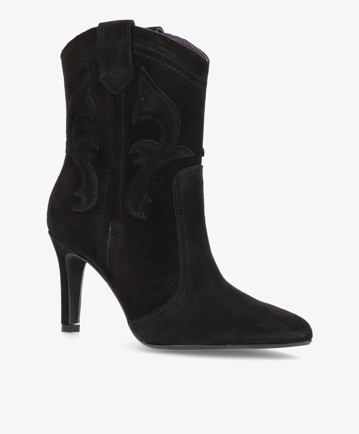 De lækreste støvletter fra phenumb i et cool westernlook. Støvlerne er produceret i et blødt ruskind, som kun bliver smukkere ved brug. De har det klassiske westernbroderi, som giver et virkelig flot touch til designet. Derudover er de nemme at påføre, da der er god plads i skaftet, som runder foroven. De lækre støvler har et klassisk look, der får cool modspil af de flotte western detaljer. Slutteligt har de en smal hæl på 8,5 cm.