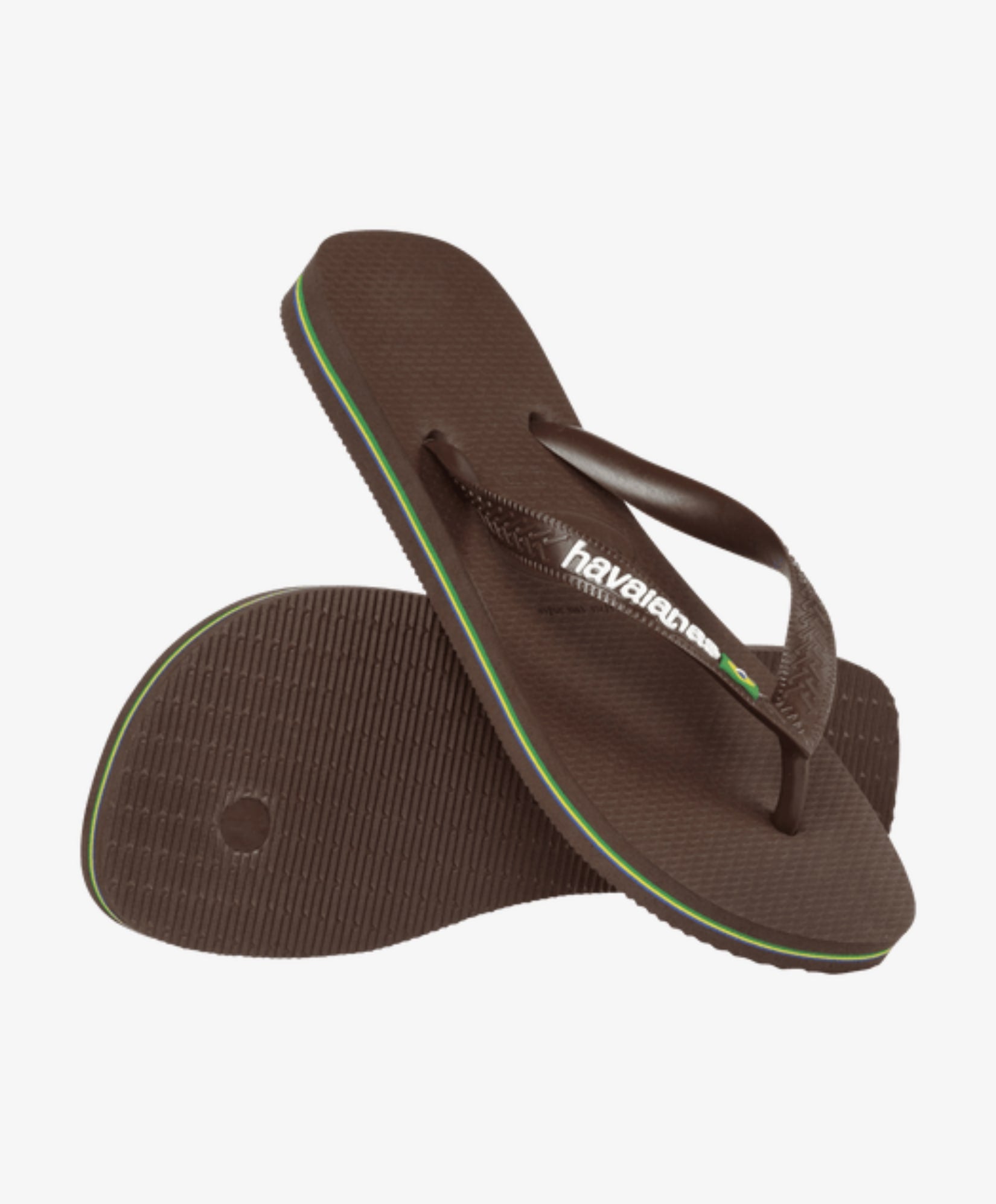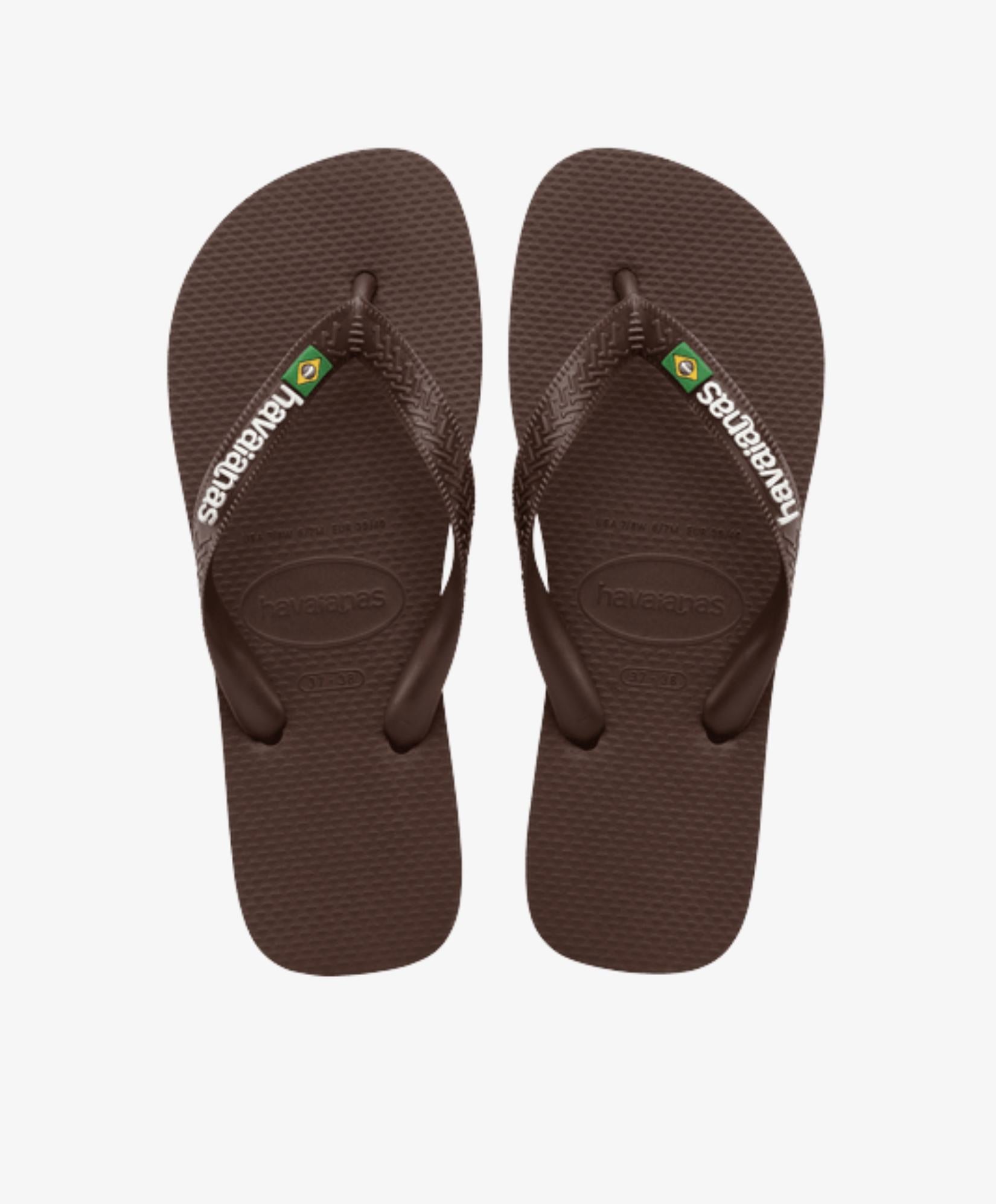 Tidløst design med brasiliansk attitude - Havaianas BRASIL LOGO i mørkebrun er en elegant version af den ikoniske sandal med flagdetalje og kontraststriber i sålen. Den dybe, varme farve gør modellen alsidig og nem at style, mens den klassiske flip-flop-form giver dig den komfort, Havaianas er kendt for.