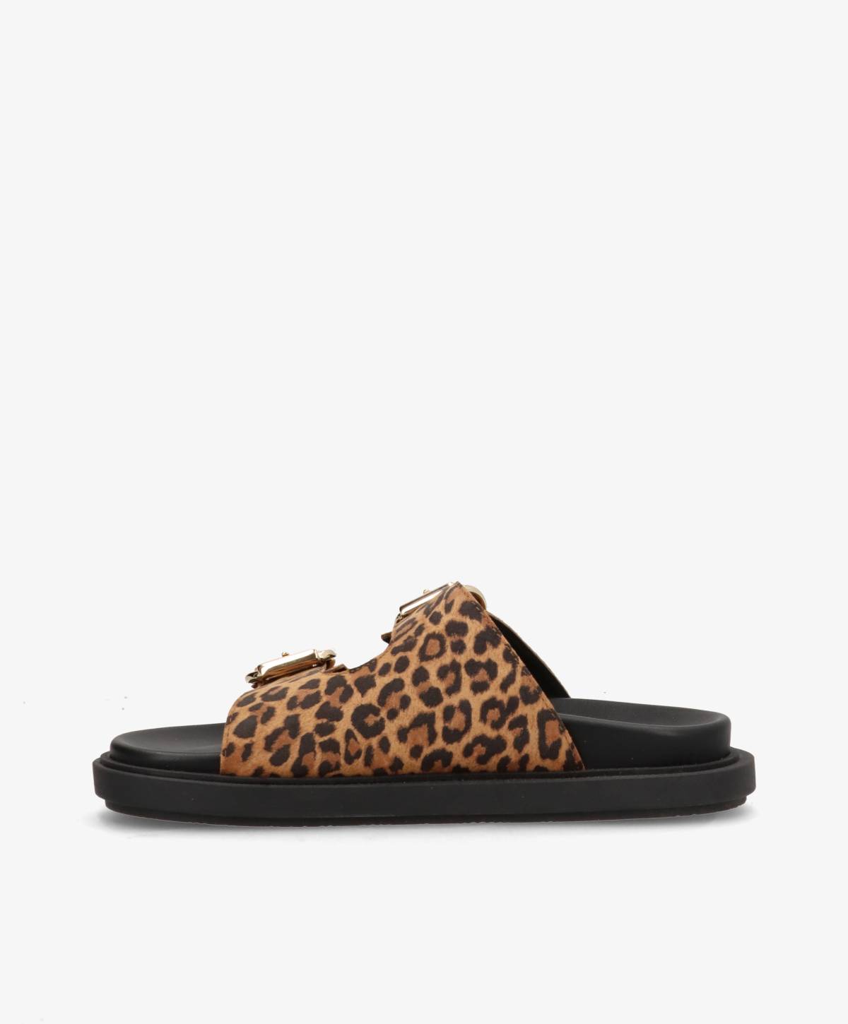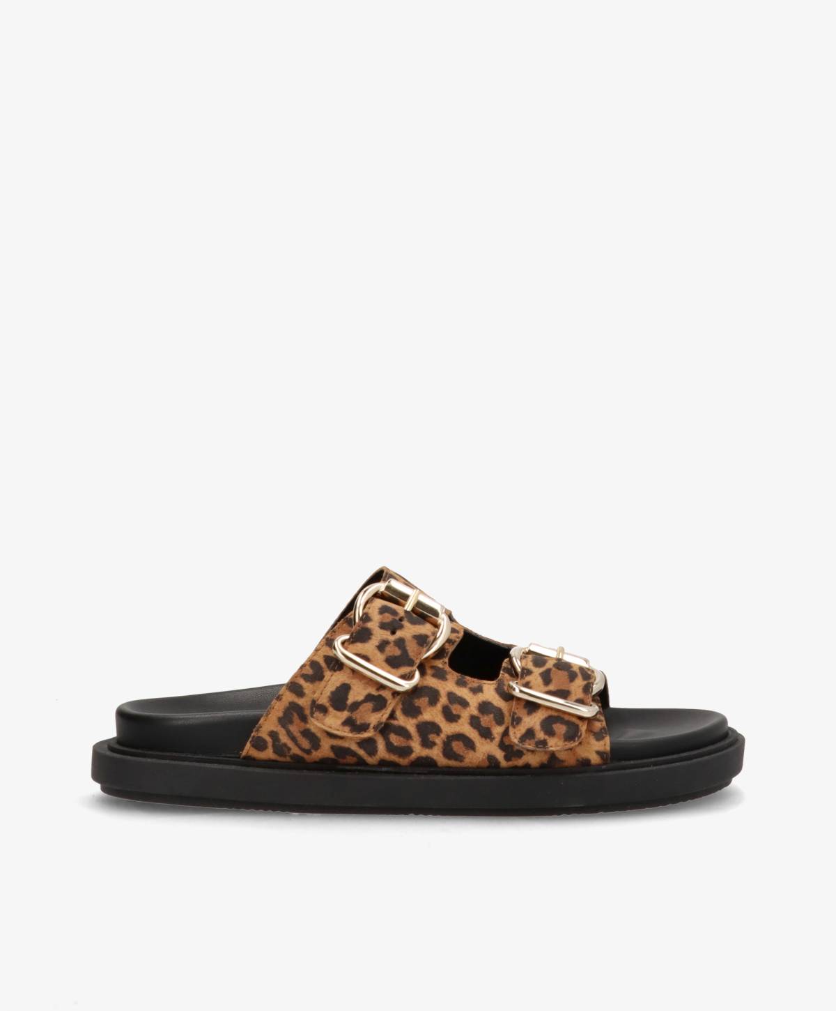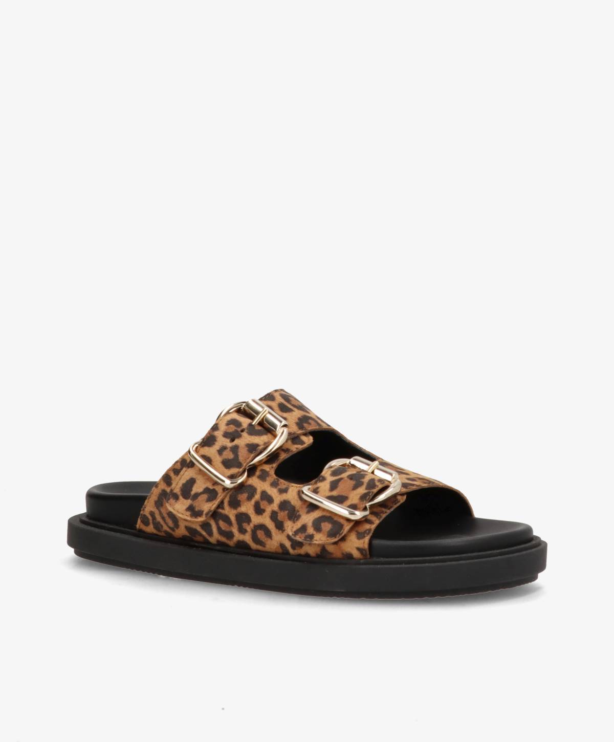 Sæt et vovet og fashionabelt præg på dit sommerlook med CLEO S fra phenumb copenhagen. Sandalen er lavet i eksklusivt leopardmønstret ruskind og prydet med guldspænder, der giver et sofistikeret og cool udtryk. Den sorte sål er blød og støttende, så du får både stil og komfort i ét.