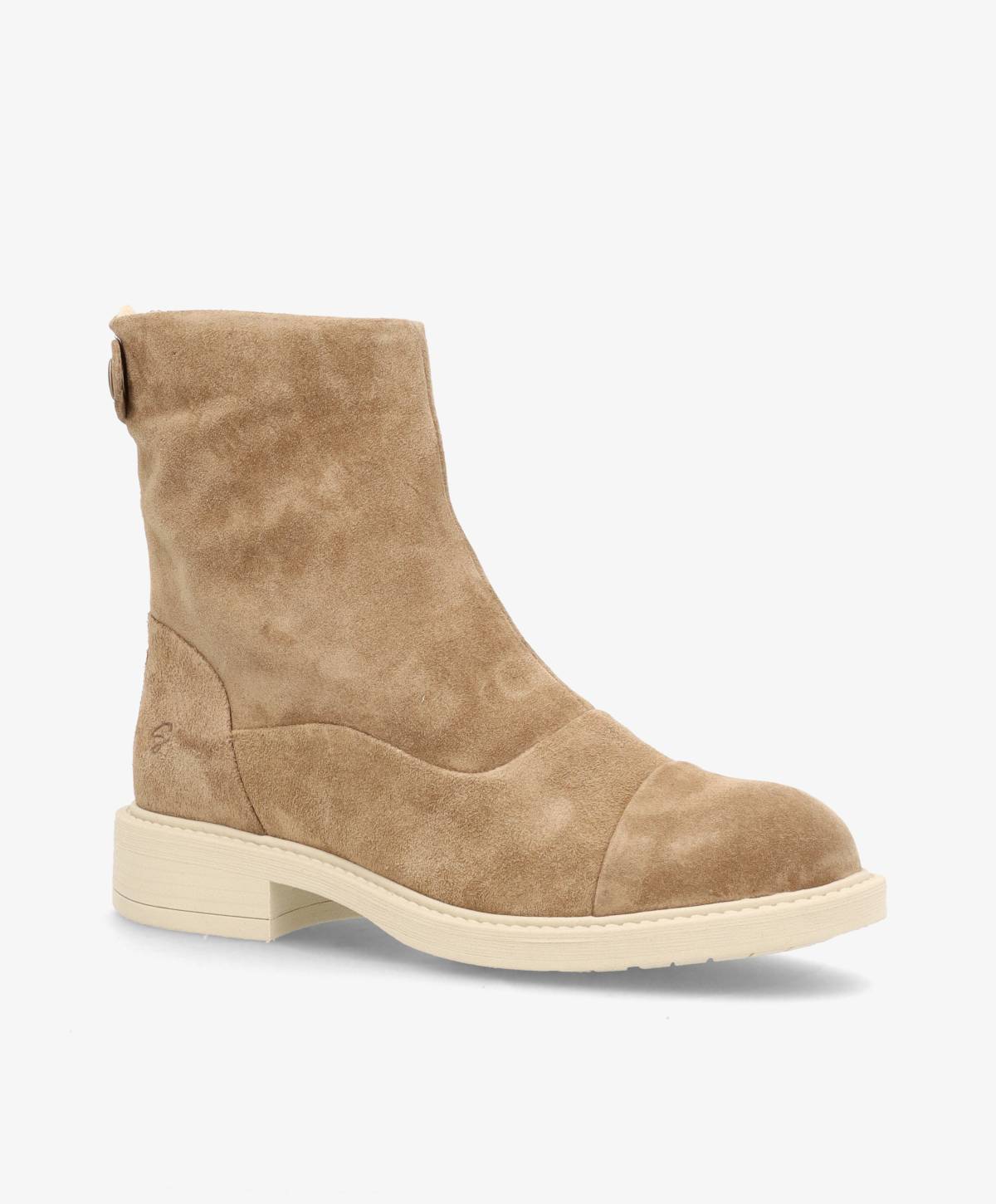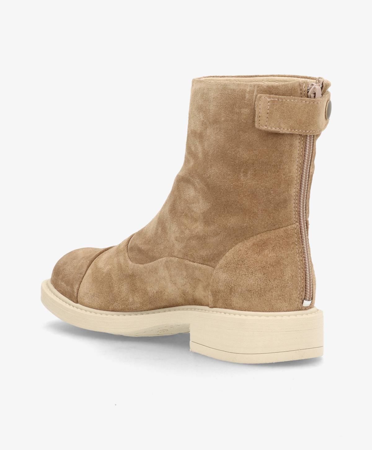 Den klassiske Dahlia støvle fra Shoedesign Copenhagen i et lækkert ruskind. Støvlerne har en flot, beige farve der giver et tidløst touch. De lukkes forsvarligt med lynlås og trykknap bagtil, og sidder derudover rigtig godt på foden. Hælen har et kontrastlook, der giver lidt ekstra kant til designet og samtidig et moderne indspark. De lækre støvler kan styles på et væld af måder og bliver kun bedre med tiden, da de er lavet i et smørblødt ruskind.