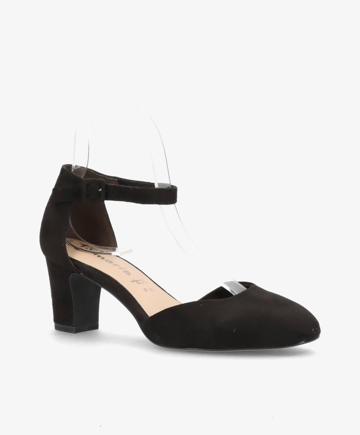 Disse klassiske sorte pumps fra Tamaris er et must-have til enhver garderobe. De kombinerer tidløs elegance med en behagelig hælhøjde, hvilket gør dem perfekte til både hverdag og festlige lejligheder. Med en smal rem over anklen og en afrundet tå er de både feminine og stilfulde. Det bløde tekstilmateriale sikrer en komfortabel pasform hele dagen.