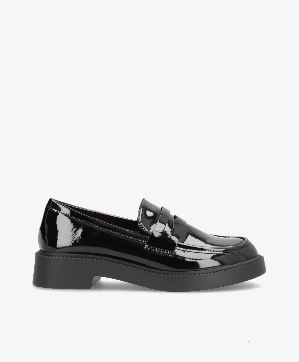Skil dig ud med ALBI sandalen i sort imiteret lak – en edgy og sofistikeret tilføjelse til din sommergarderobe. Med sit spidse snit, dekorative dobbeltspænder og metaløjer, kombinerer den moderne attitude med feminin elegance. Den justerbare hælrem sikrer en behagelig pasform, og det glinsende laklook giver et eksklusivt udtryk til både hverdags- og aftenbrug.