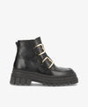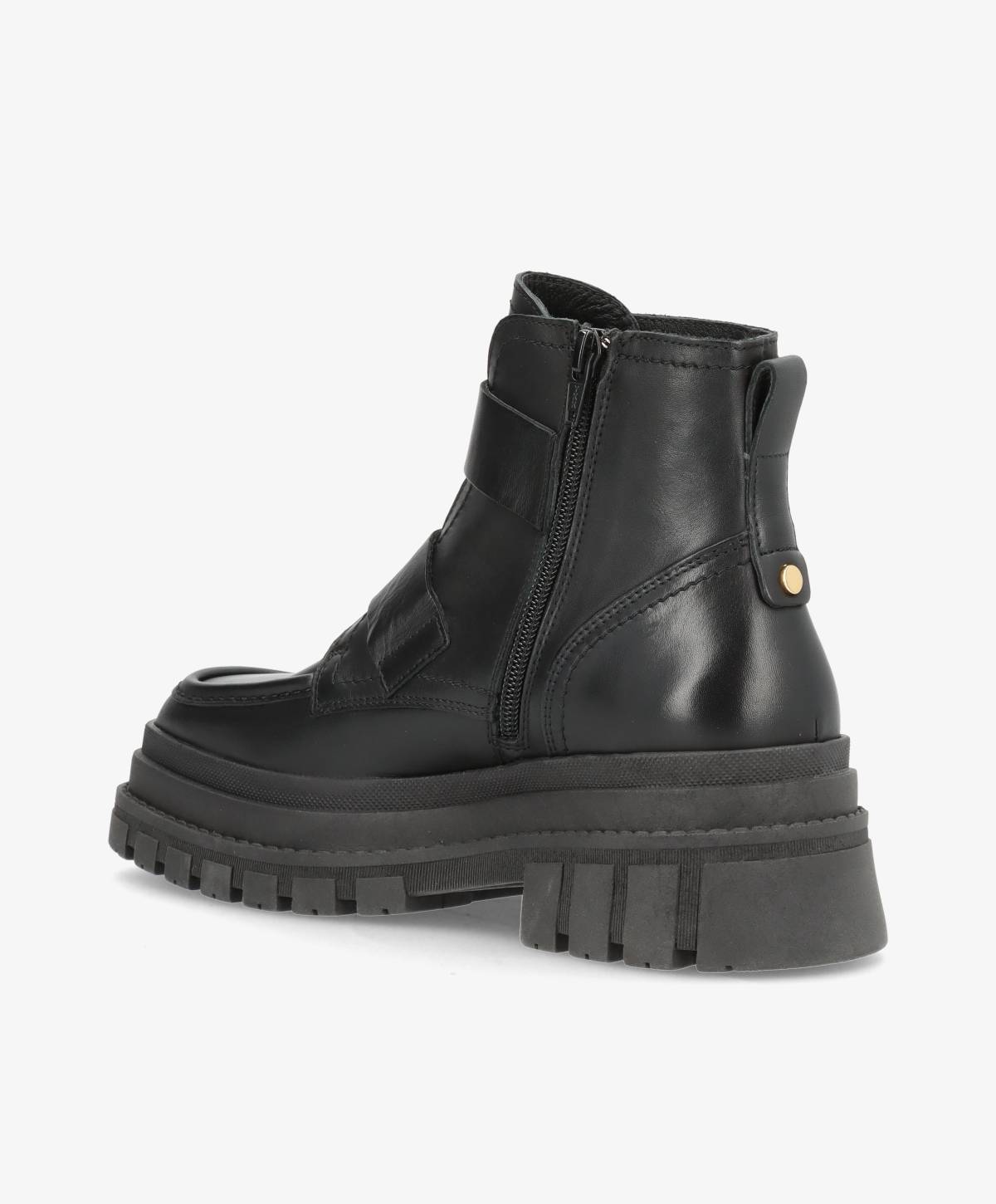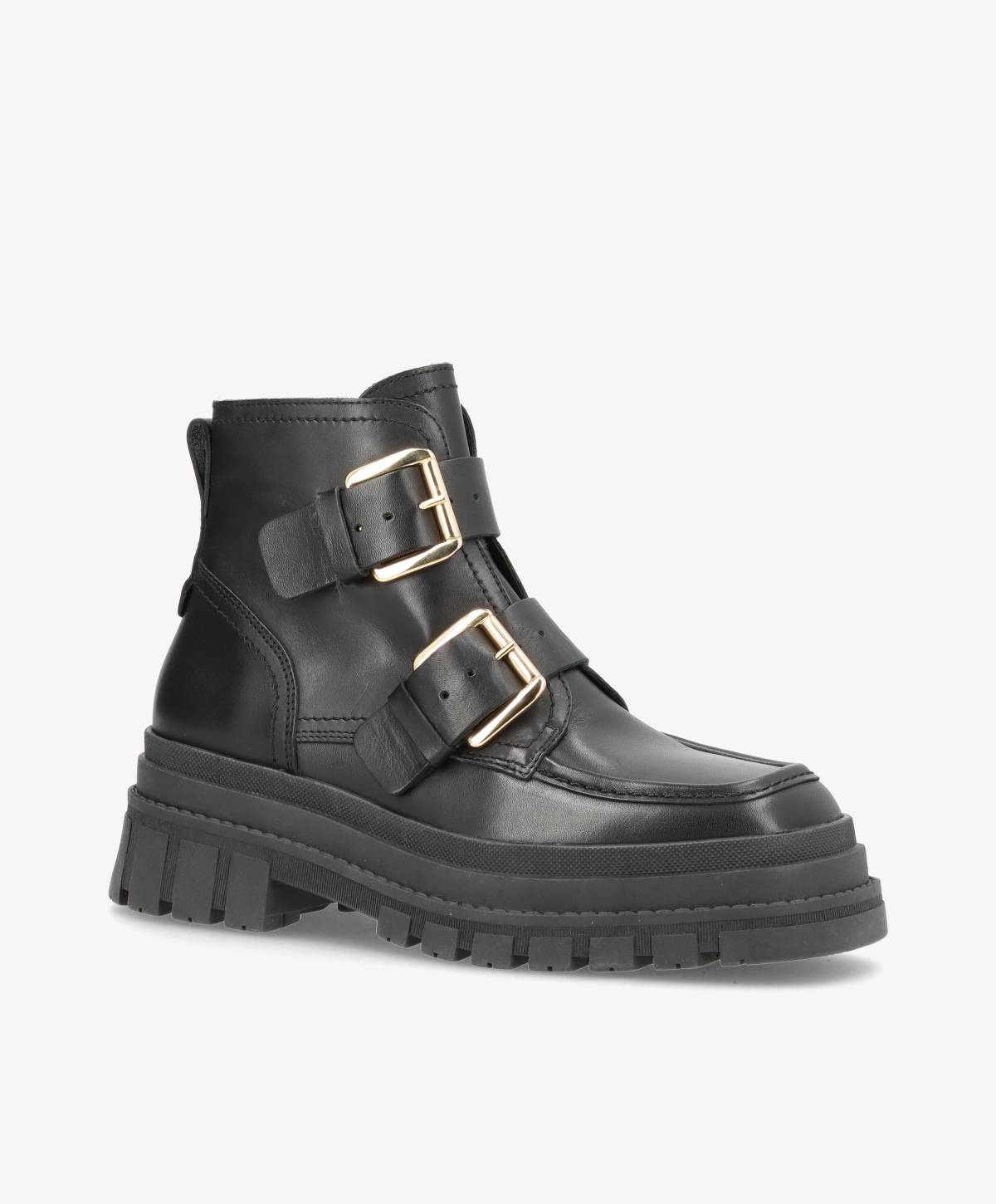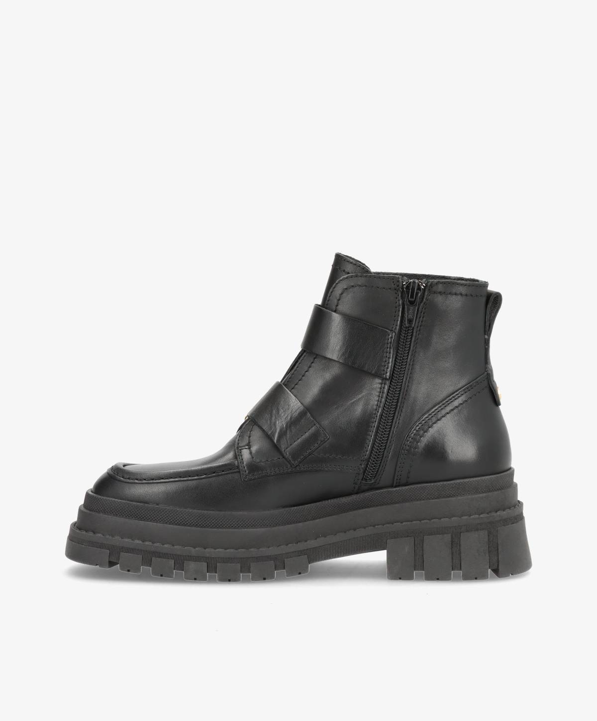 De lækreste boots fra phenumb i en klassisk sort. Støvlerne har et groft look med en chunky sål, som også giver den bedst mulige komfort. De lukkes med diskret lynlås på indersiden og har to brede remme over fronten, som desuden kan spændes ind. På remmene sidder der to store statement spænder, som lige giver det sidste til designet. En cool style der med sikkerhed bliver en favorit hos hende, der elsker de rockede og rå elementer.
