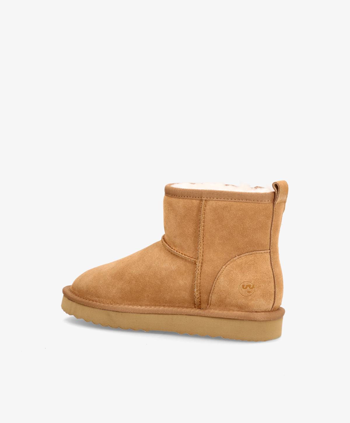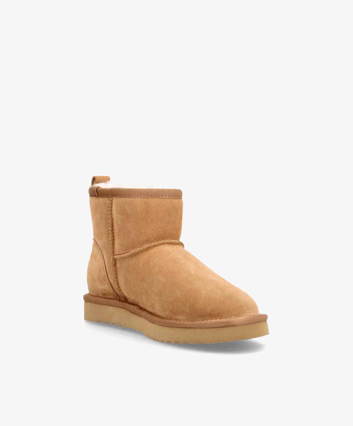 De lækreste bamsestøvler i en klassisk camel - perfekte til efterårsuniformen. De bløde støvler er lavet i et flot ruskind og har en mellemhøj sål, der er super komfortable. Støvlerne har ægte uld foring, som holder foden varm og giver ekstra komfort. De er nemme at påføre og er super komfortable, så de roligt kan bæres hele dagen. De fine bamsestøvler har desuden tydelige syninger, som bryder det rene design lidt.