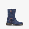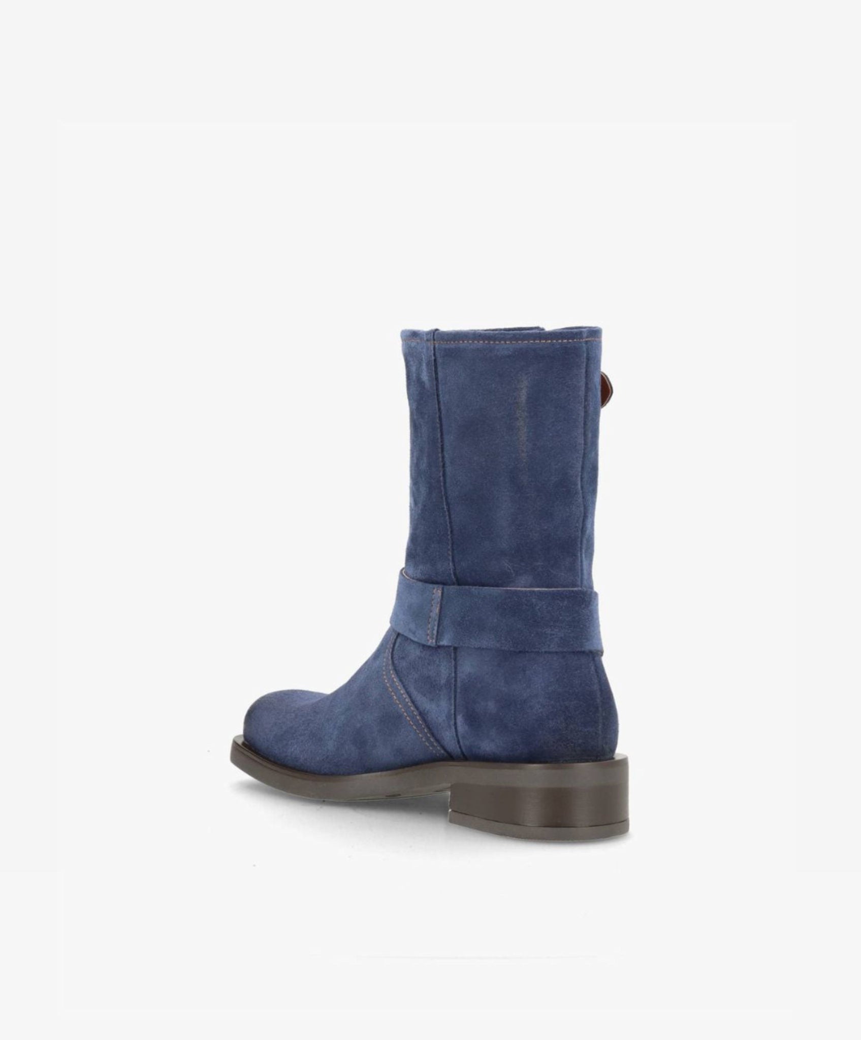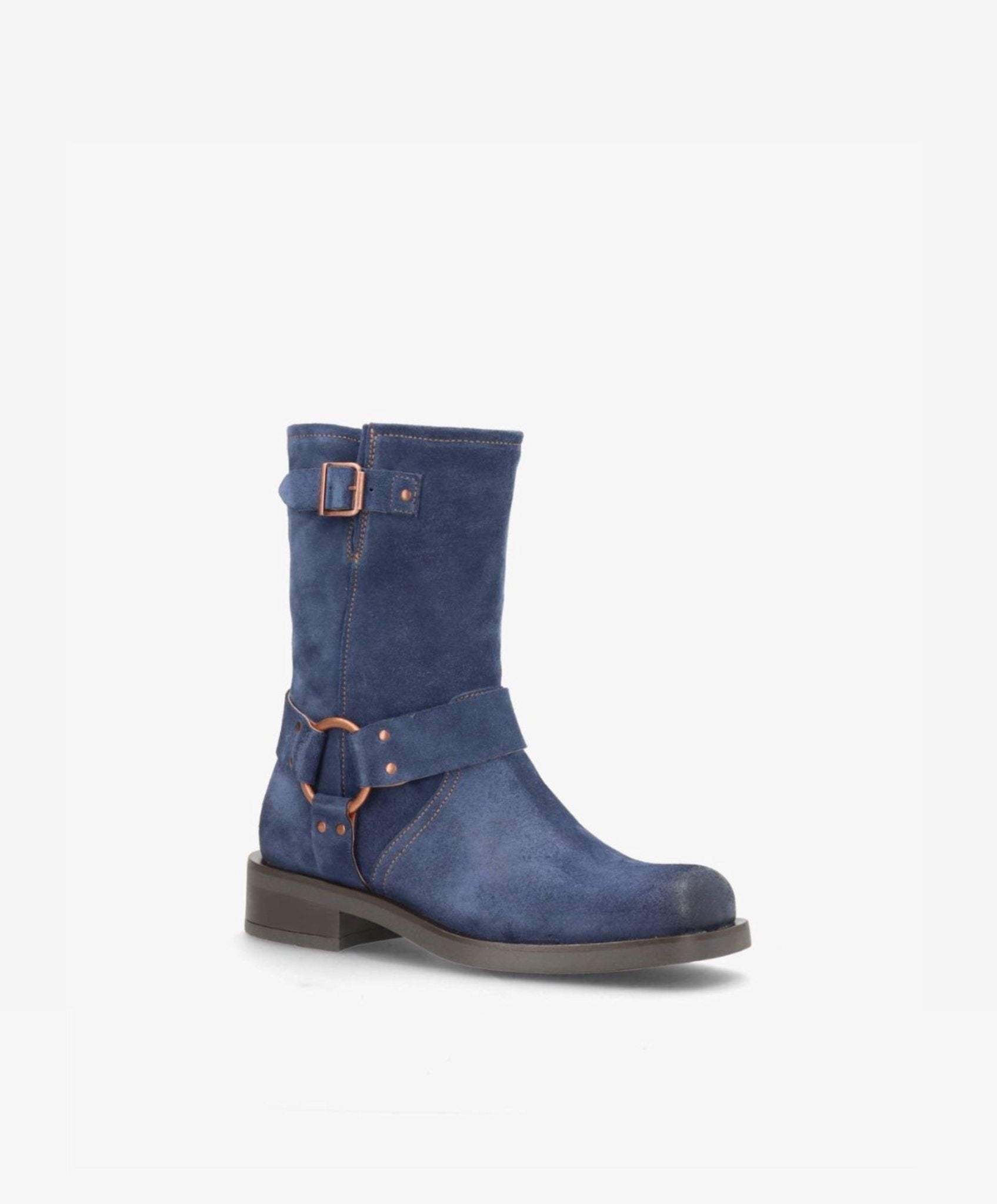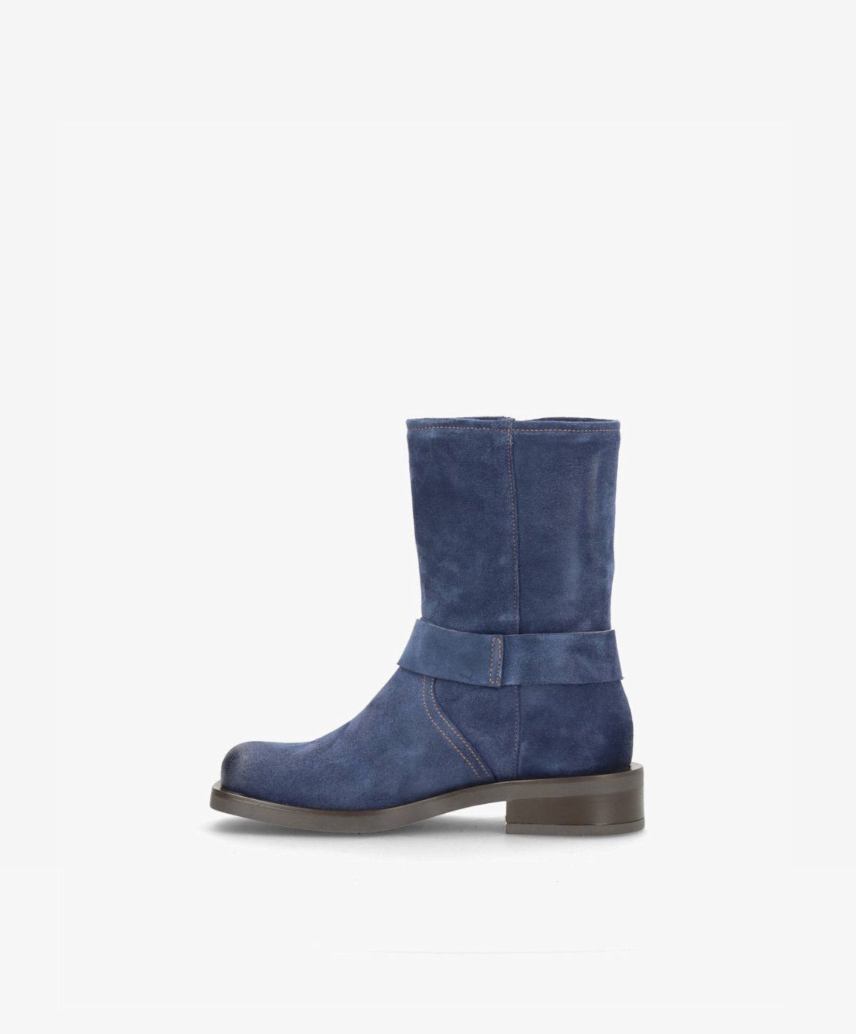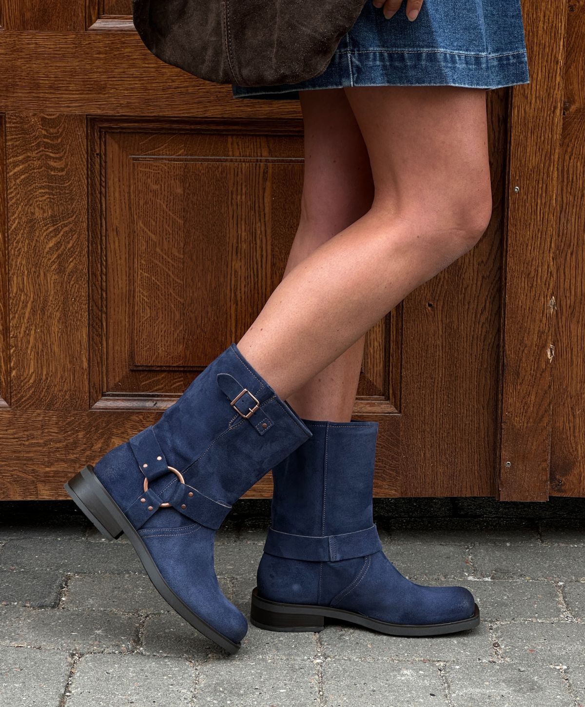 De lækreste bikerboots fra phenumb i et friskt, blåt ruskind. Støvlerne er det perfekte miks mellem tidløs og moderne, og modspillet mellem det klassiske og den blå farve er det oplagte valg til fashionistaen. Støvlerne er prydet med en masse, lækre detaljer såsom nitter og statementspænder, der understreger det eksklusive look. De er nemme at påføre med et rummeligt skaft, og de sidder godt til på foden. De flotte støvler har en firkantet snude, der giver et moderne touch.