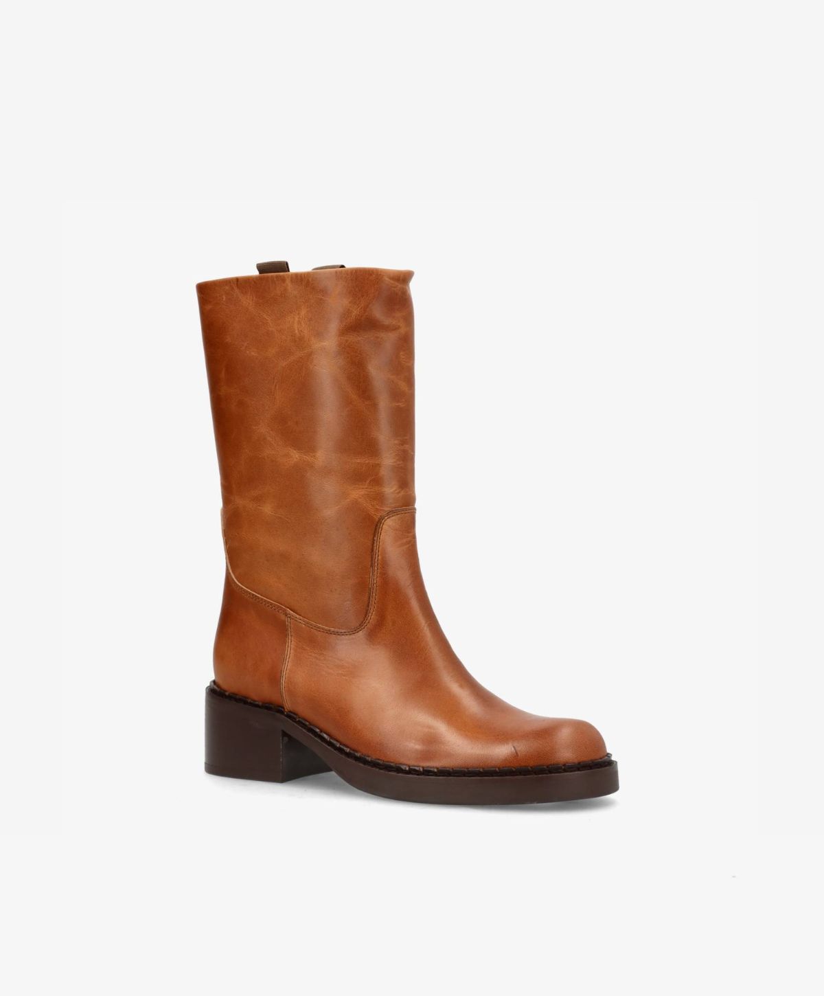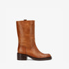 EXPOSED i cognac læder er den perfekte støvle til dig, der ønsker minimalistisk elegance og høj komfort i ét og samme design. Det bløde, glatte læder skaber et eksklusivt look, mens den solide blokhæl og rundede snude gør støvlen både praktisk og stilfuld til hverdagsbrug. Den synlige randsyning tilføjer et cool twist og understreger den høje kvalitet, der kendetegner phenumb copenhagen.