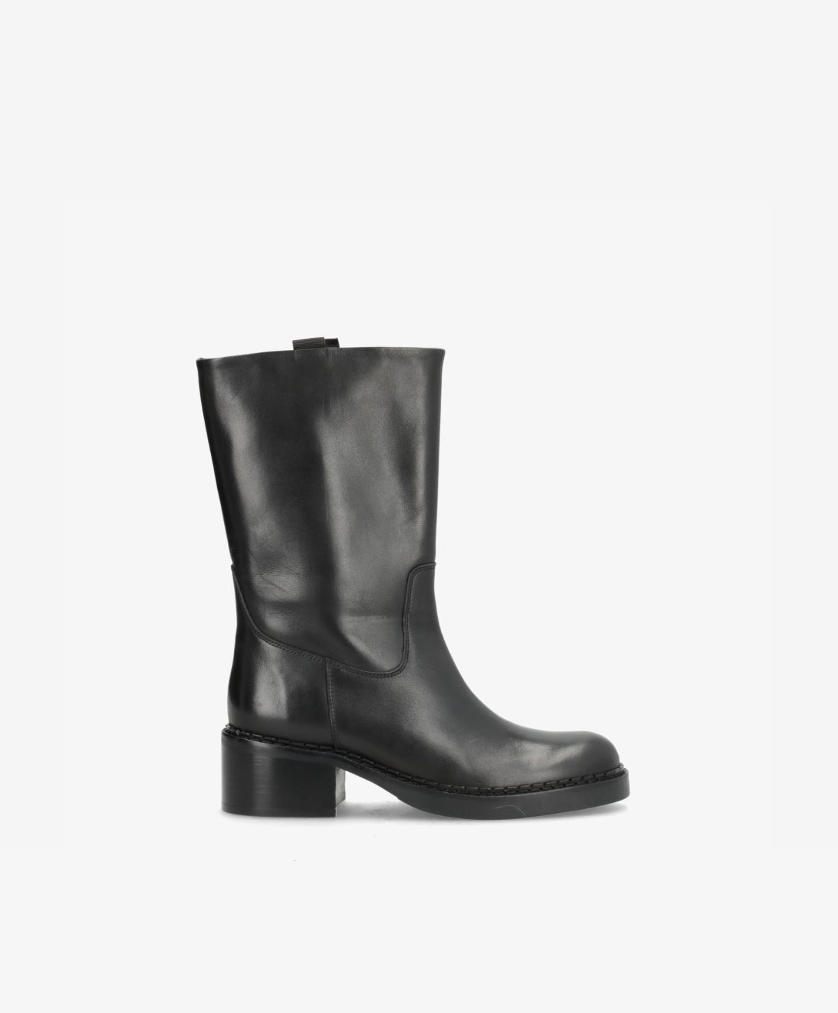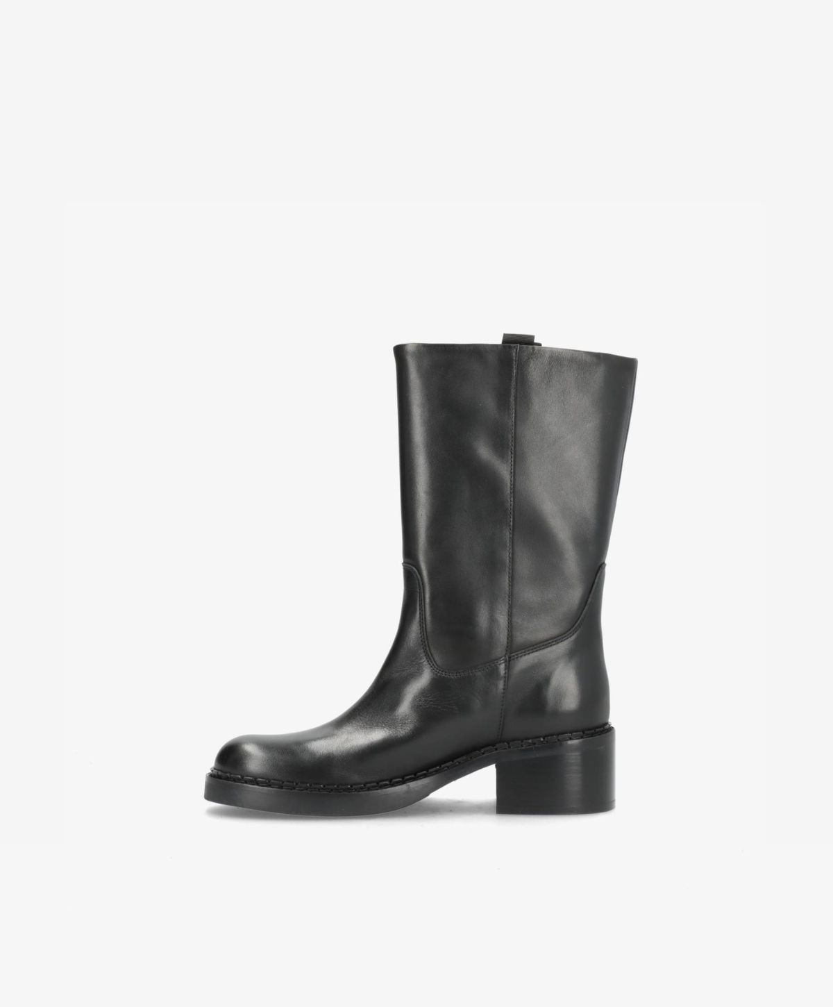 EXPOSED i sort læder er den perfekte støvle til dig, der ønsker minimalistisk elegance og høj komfort i ét og samme design. Det bløde, glatte læder skaber et eksklusivt look, mens den solide blokhæl og rundede snude gør støvlen både praktisk og stilfuld til hverdagsbrug. Den synlige randsyning tilføjer et cool twist og understreger den høje kvalitet, der kendetegner phenumb copenhagen.