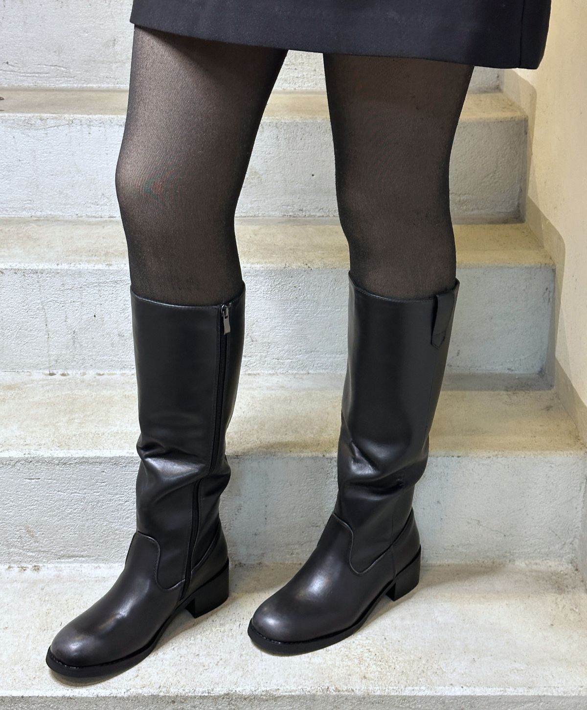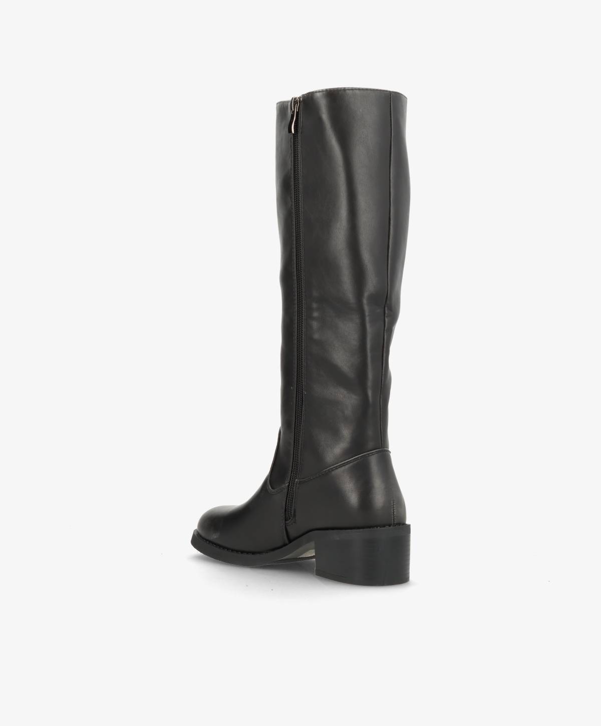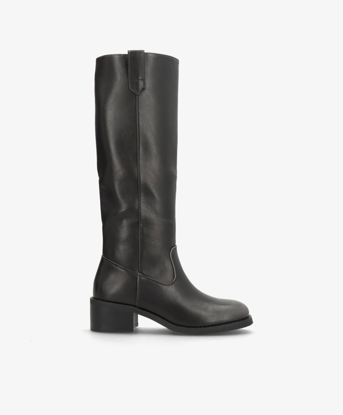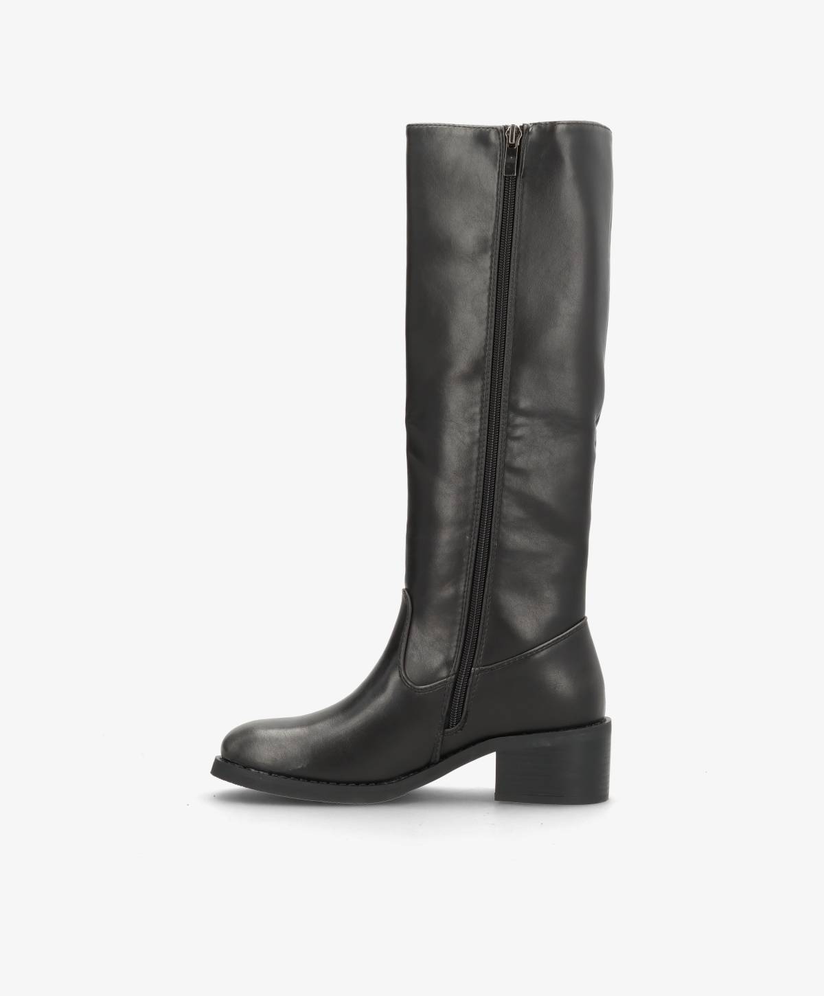 HELDI C371 er en elegant lang støvle i sort imiteret læder, der kombinerer klassisk design med moderne komfort. Den glatte overflade og enkle linjer giver støvlen et stilrent udtryk, mens den solide blokhæl og fleksible sål sikrer en behagelig pasform hele dagen.