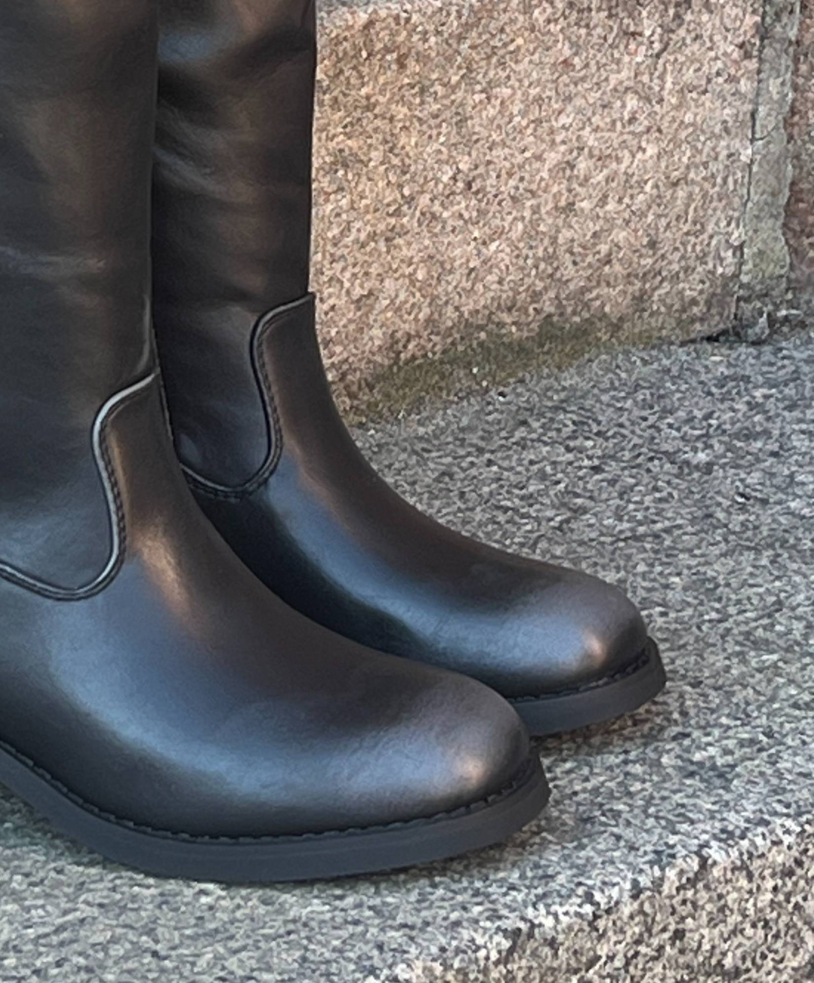 HELDI C371 er en elegant lang støvle i sort imiteret læder, der kombinerer klassisk design med moderne komfort. HELDI støvlen har et patina look på snuden som giver hele støvlen et super cool look. Den glatte overflade og enkle linjer giver støvlen et stilrent udtryk, mens den solide blokhæl på 5 cm. og fleksible sål sikrer en behagelig pasform hele dagen.