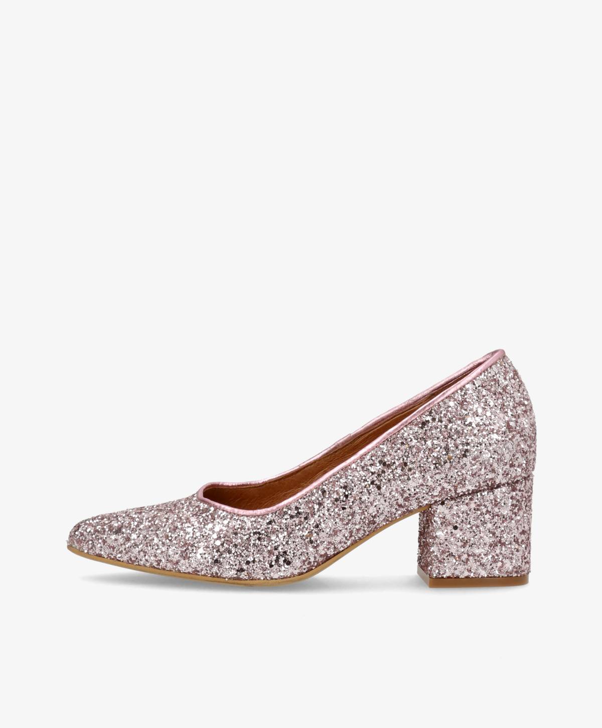 De smukkeste glitterpumps fra Shoedesign Copenhagen i en elegant lyserød med glitter. De fine pumps har et feminint look med spids snude og en lille hæl. Hælen måler 5,5 cm, og giver derfor et godt løft uden at gå på kompromis med kvaliteten. De smukke pumps er oplagte til festbrug og kan pifte ethvert outfit op.