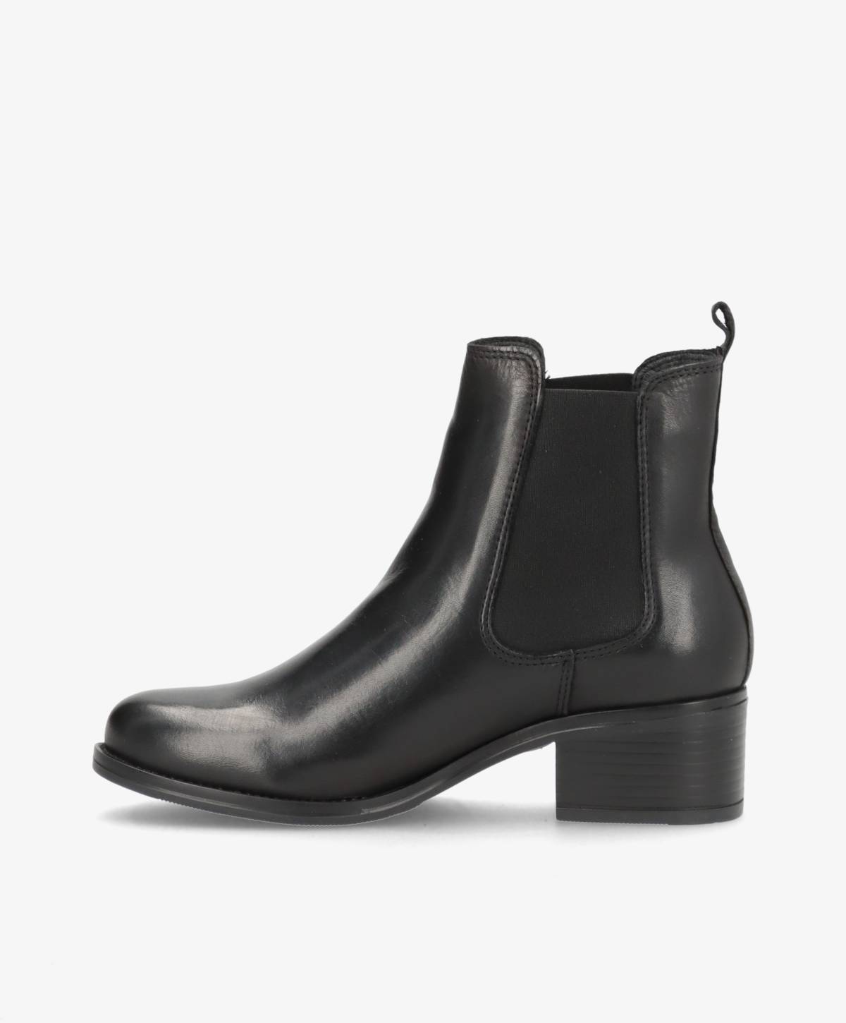 JUANOLA støvler fra Shoedesign Copenhagen kombinerer et klassisk og elegant look med komfort og funktionalitet. Fremstillet af 100% skind, disse ankelstøvler har en slank silhuet og elastiske paneler på siderne, der sikrer nem påtagning og en perfekt pasform. Med deres 4,5 cm hæl, tilføjer de lidt højde uden at gå på kompromis med komforten, hvilket gør dem ideelle til både hverdag og aftenbrug.
