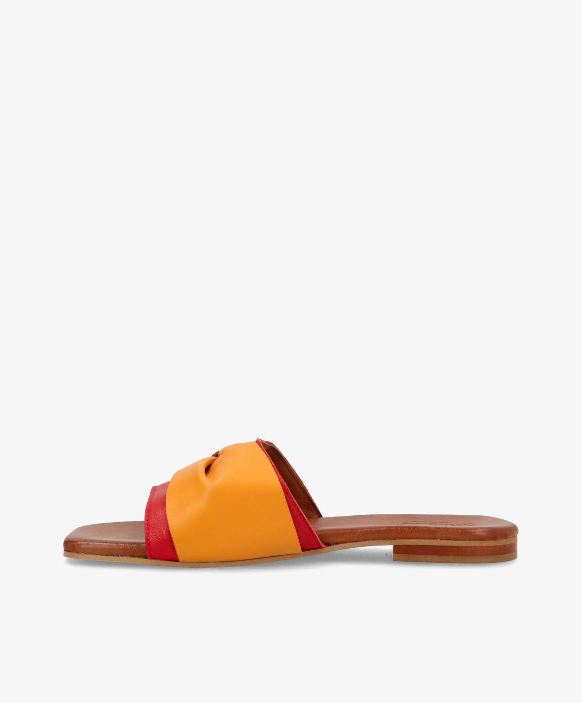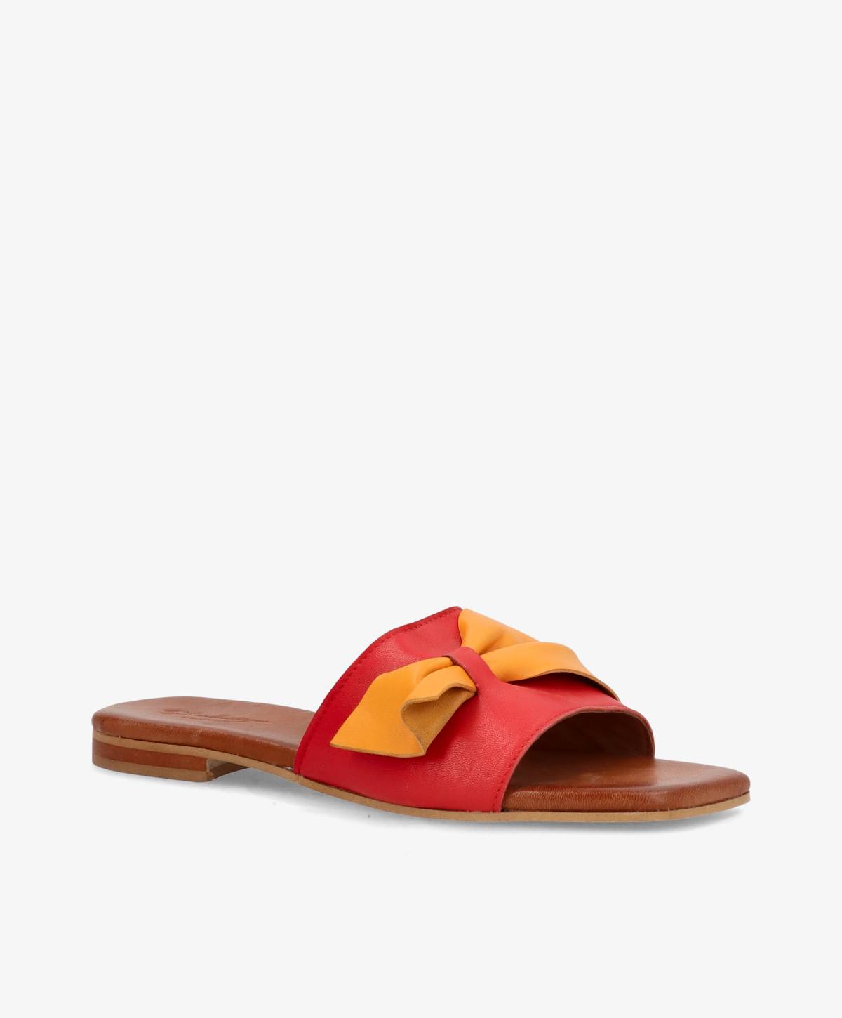 Få en helt unik style; dette er en kollektionsprøve, som udelukkende har været brugt til udstilling. Designet af Shoedesign Copenhagen får du en feminin sandal i flotte farver. Sandalerne har en bred rem, der er prydet med en sløjfe i kontrastfarve. Der findes kun dette ene par, som er en str. 37.