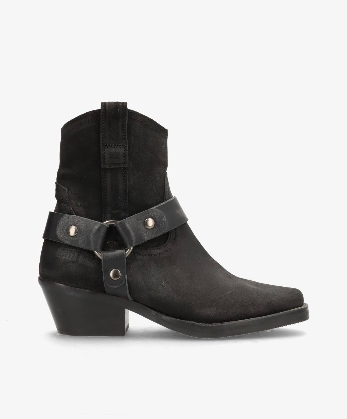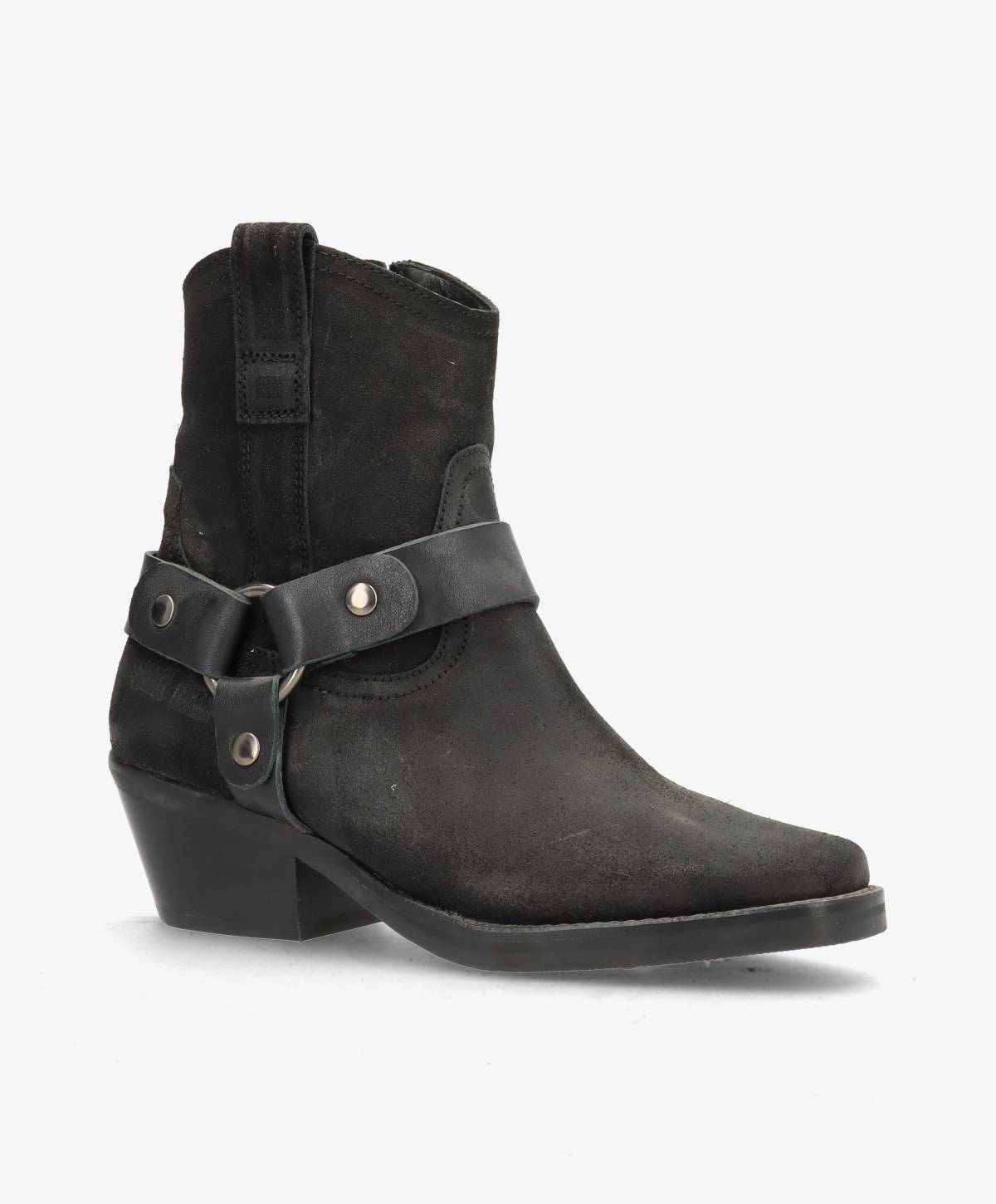 Få en helt unik style; dette er en kollektionsprøve, som udelukkende har været brugt til udstilling. Designet af Johnny Bulls får du en cool westernstøvle i et lækkert, blødt skind. Støvlerne har spids snude og en kantet blokhæl, der løfter og give støtte. Derudover er de prydet med remme og nitter, som understreger westernlooket. Der findes kun dette ene par, som er en str. 37.