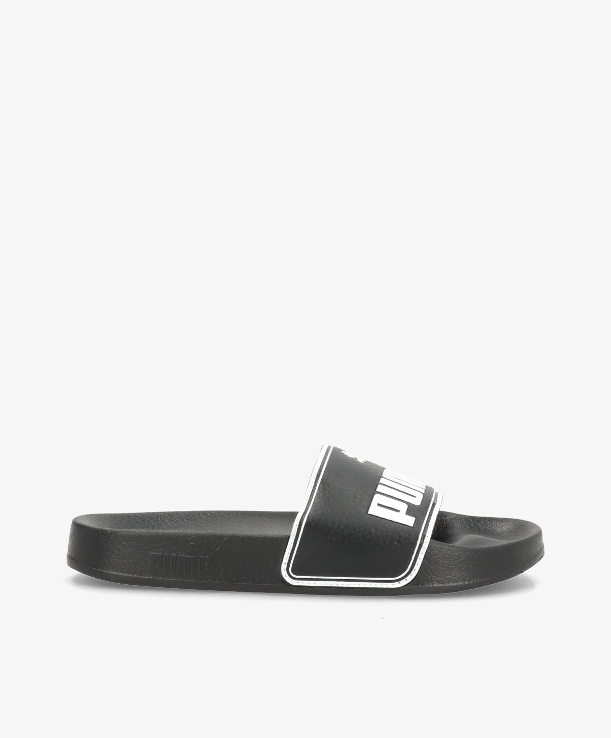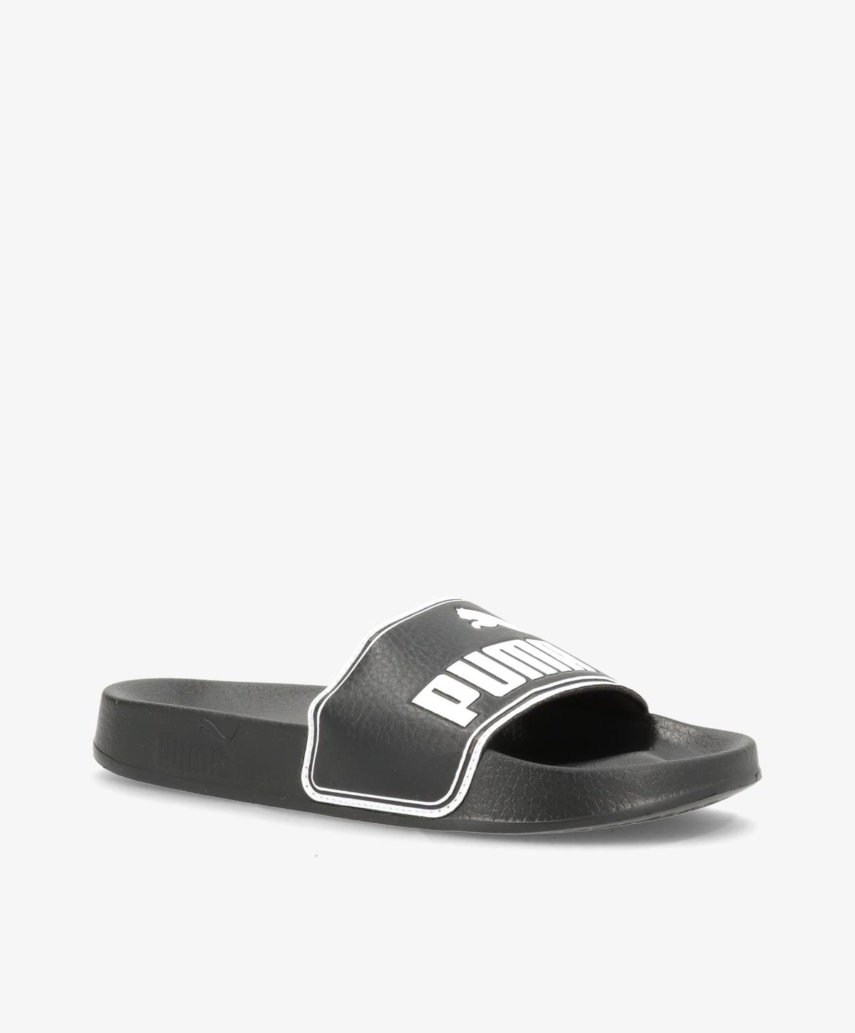 Puma simsandal i svart med stor logga på framfotsremmen. Bär dessa flip flops som inomhusskor eller vid poolen på din semester.
