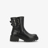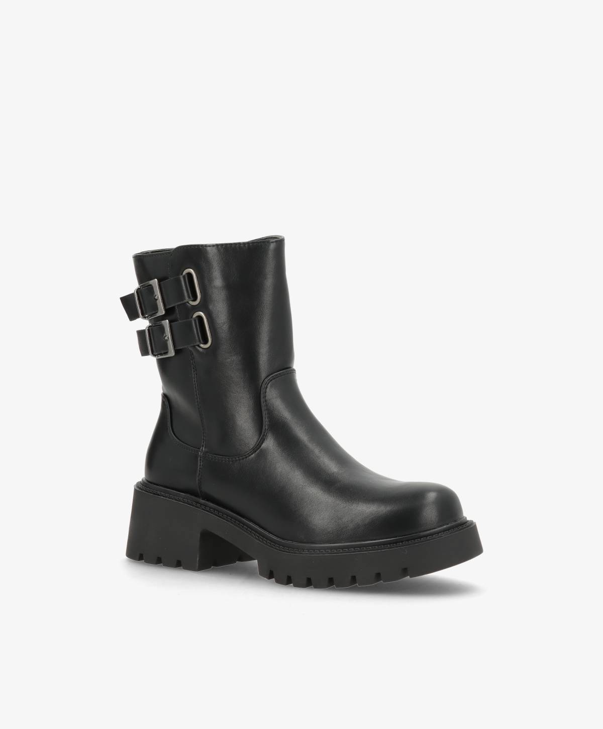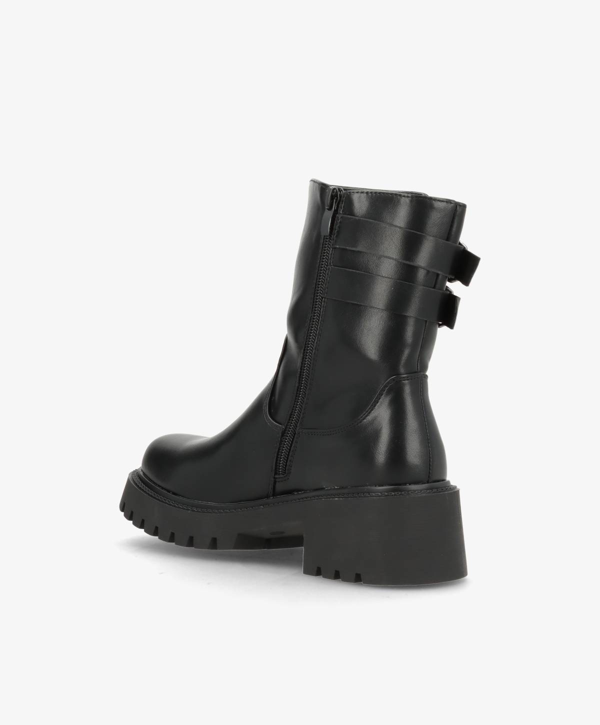 LEXA er en moderne bikerstøvle med masser af attitude. Den er lavet i sort imiteret skind og designet med dobbelte spænder i siden, som giver et edgy og stilfuldt udtryk. Den kraftige sål med groft mønster og den stabile blokhæl sikrer både komfort og et fast greb i underlaget.