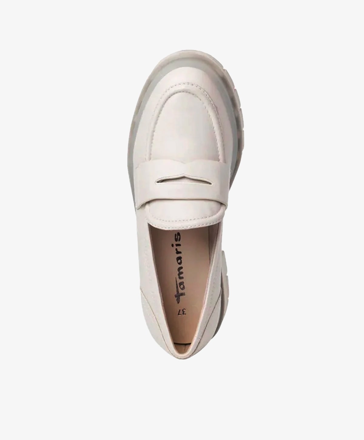 Chunky loafer från Tamaris i färgen off-white. Denna loafer har en klassisk och elegant look, och kan stylas med både klänning och jeans. Skon har en mjuk innersula, vilket gör den bekväm att gå i hela dagen.