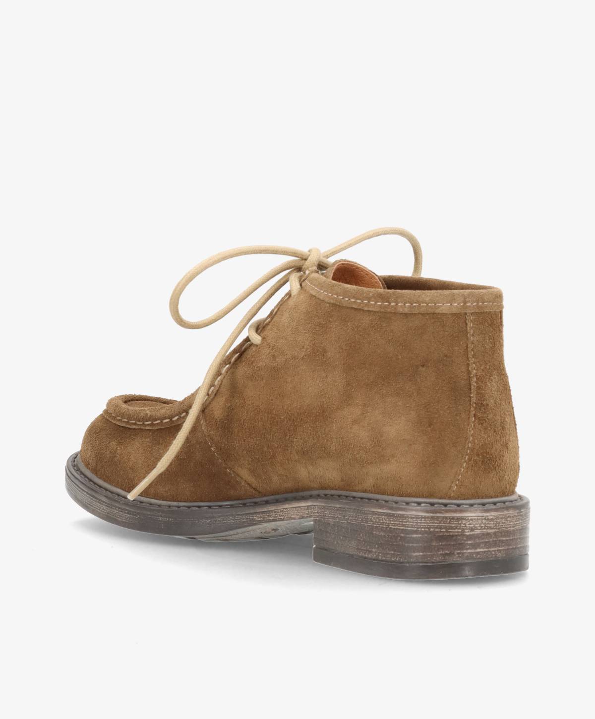 MOANA S i mørk beige ruskind er en sofistikeret og tidløs ankelstøvle, der kombinerer klassisk dansk design med luksuriøst håndværk. Det bløde ruskind giver støvlen en elegant, mat finish og en behagelig pasform, mens den solide lædersål med en let hæl sikrer komfort hele dagen. De enkle snøredetaljer understøtter det minimalistiske design og gør MOANA S til en favorit i garderoben.