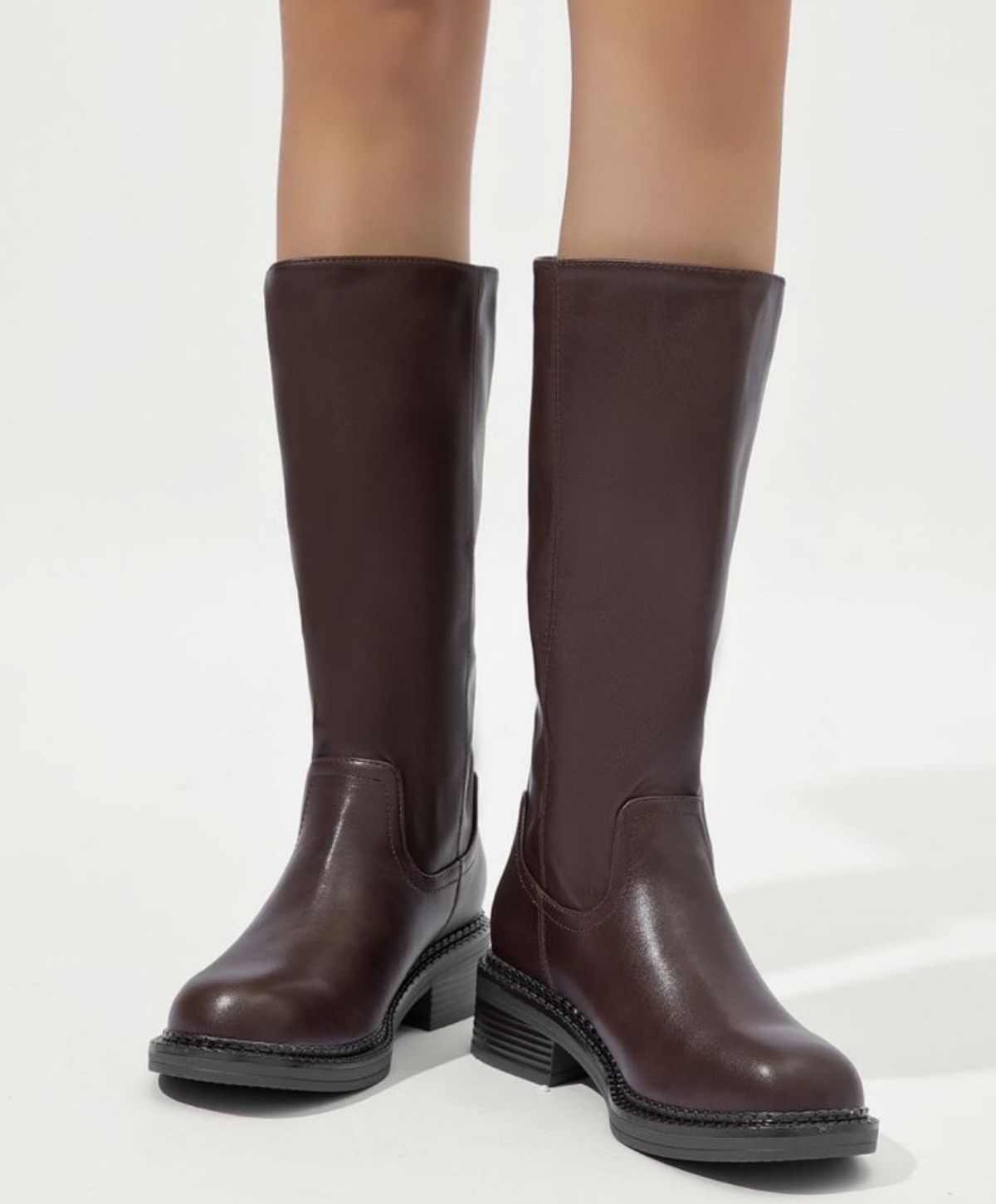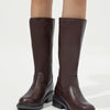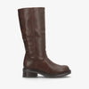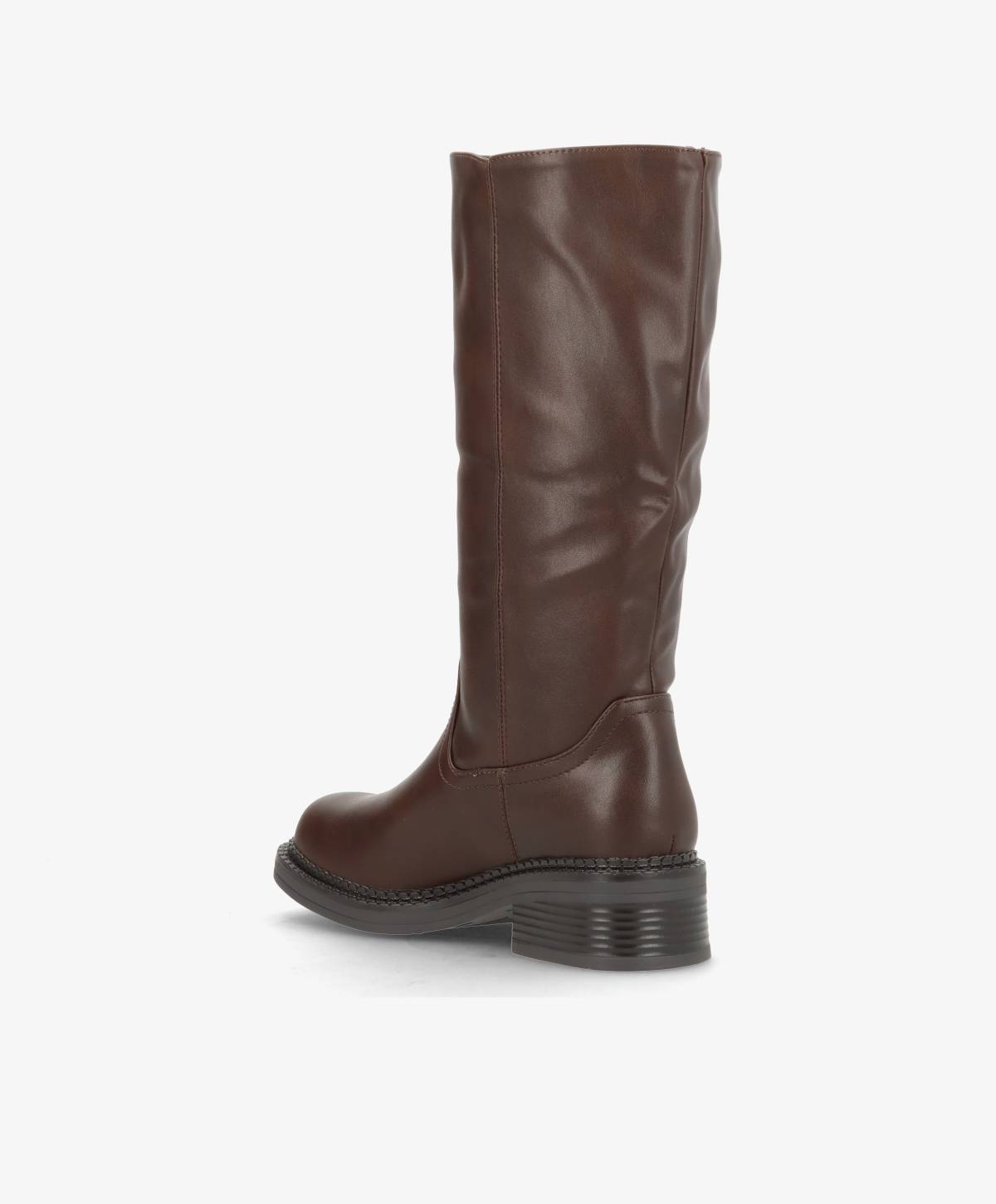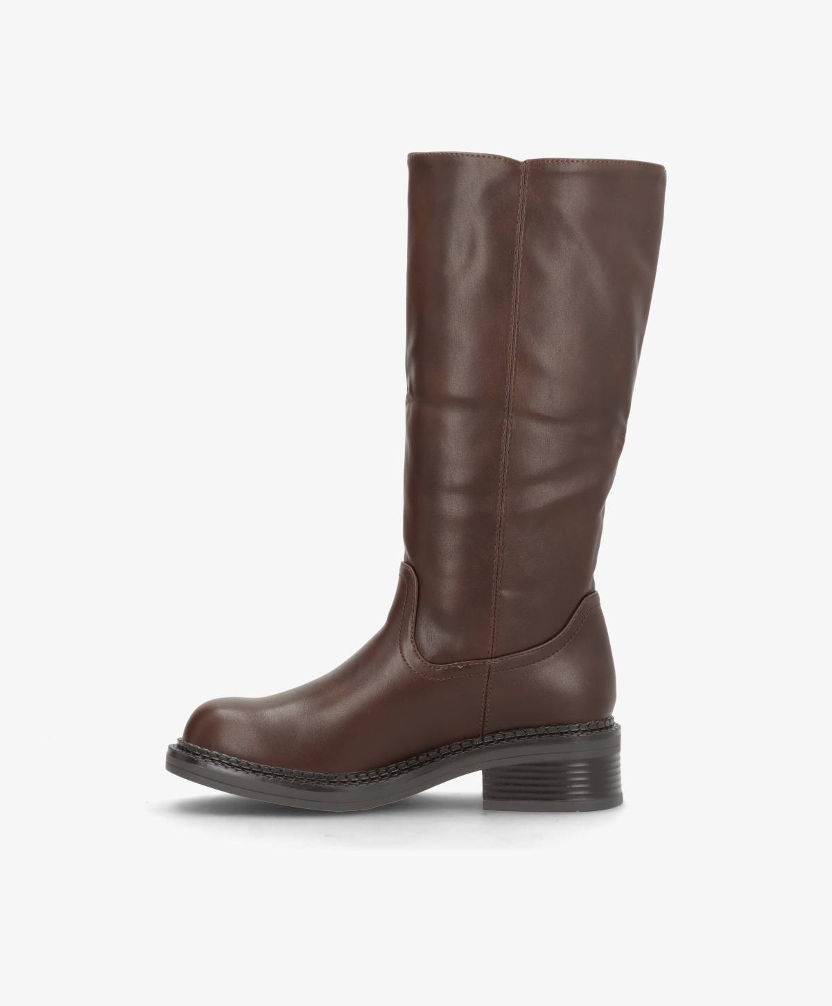NAYA er en knæhøj støvle i flot, brun imiteret læder, der kombinerer enkelhed med karakter. Det rene design med rund snude og diskrete syninger gør den let at style med både strikkjoler, jeans og leggings. Den brede hæl og solide ydersål sikrer stabilitet og komfort til hverdagens mange skridt.
