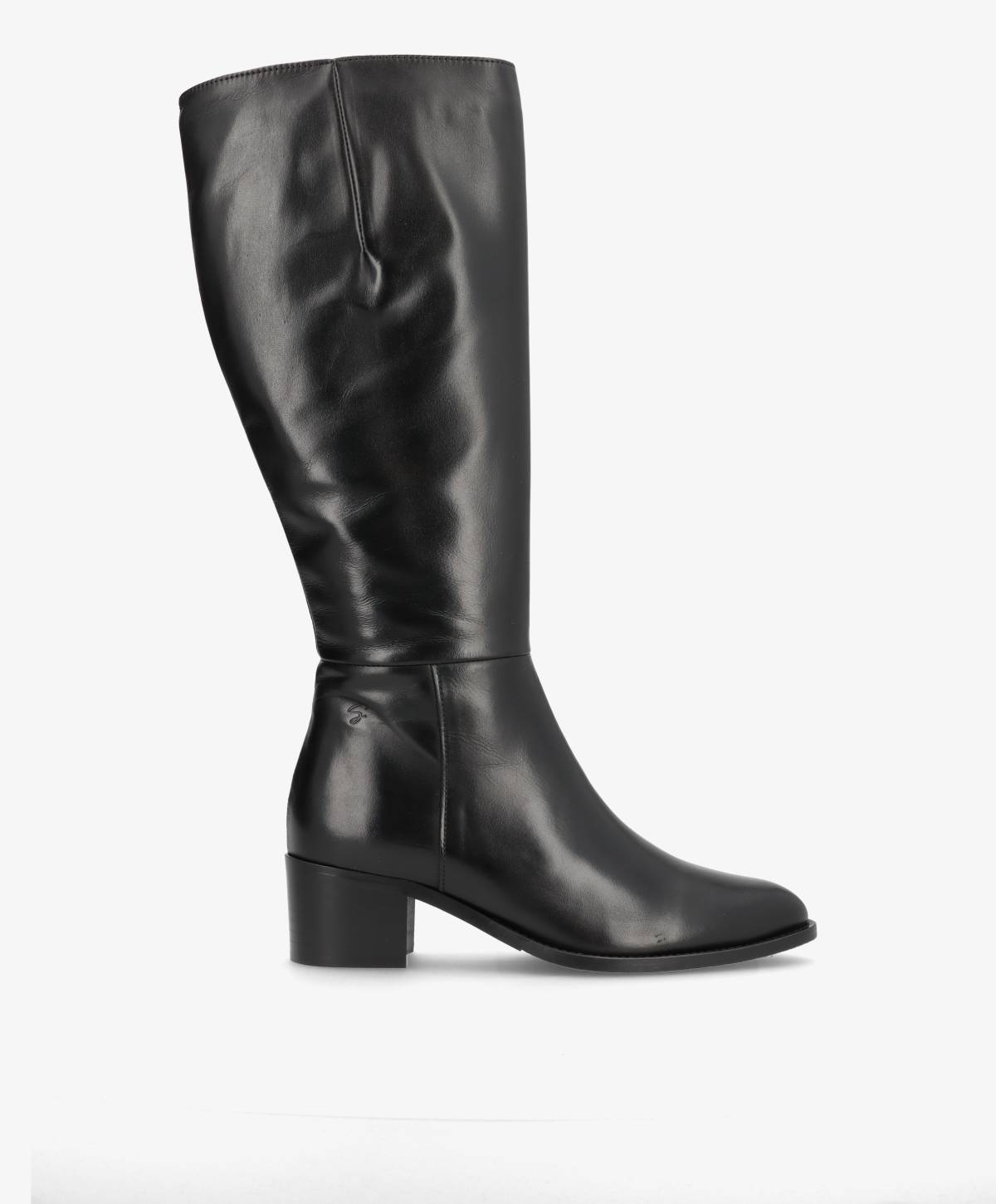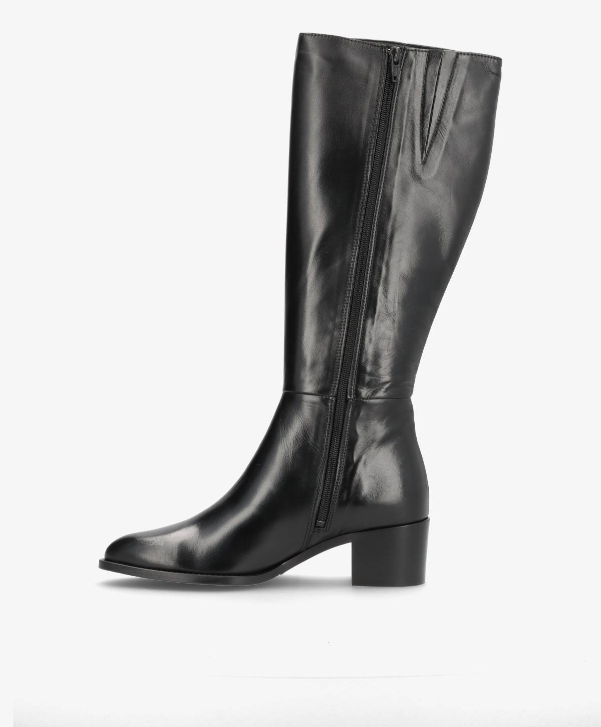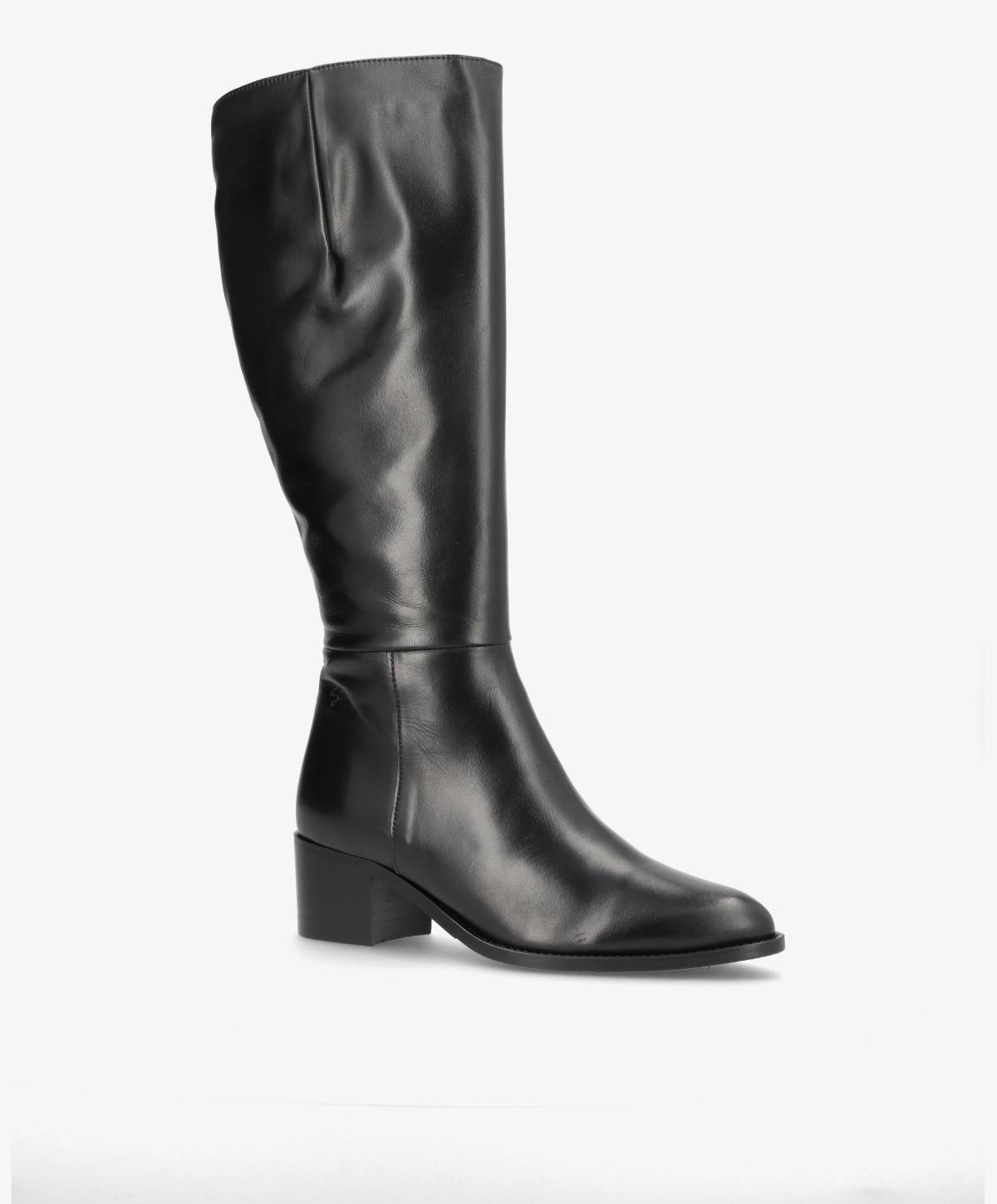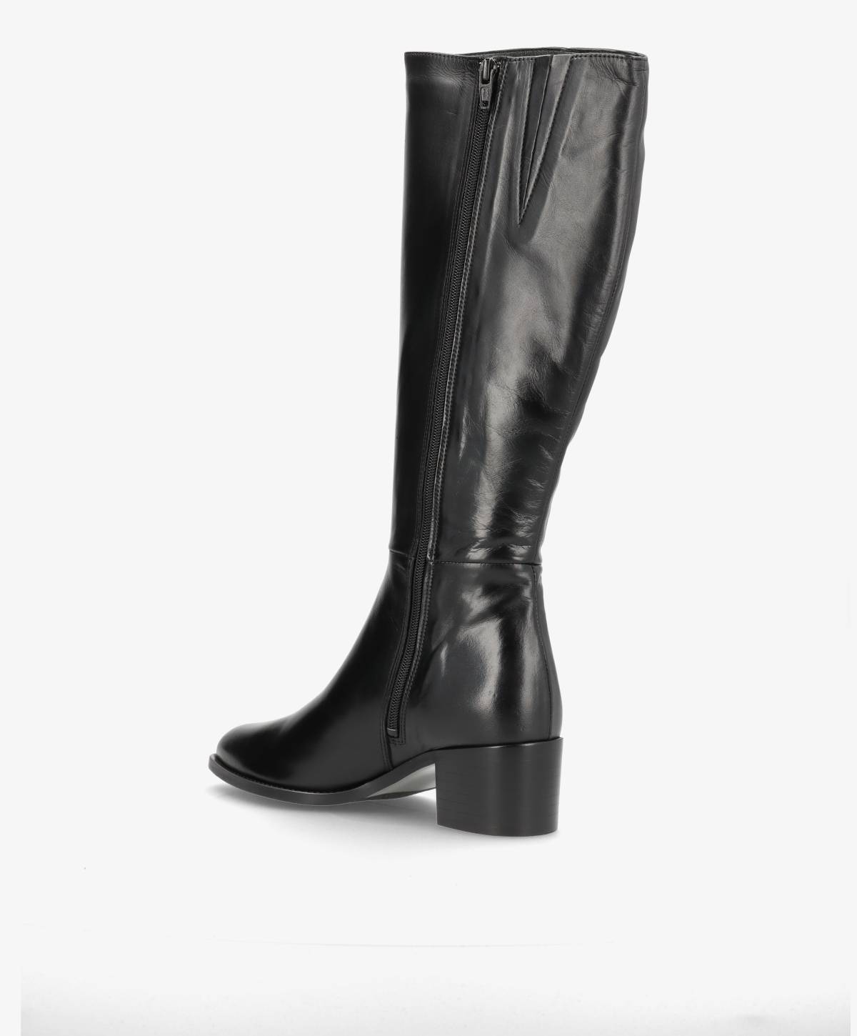 Elegante og feminine støvler fra Shoedesign Copenhagen i en tidløs sort. Støvlerne er lavet et blødt skind, som kun bliver smukkere af lidt patina, og den klassiske farve går til alt i garderoben. De har et højt skaft, der bliver bredere foroven, så de kan passe til netop dig. Derudover lukkes de forsvarligt med en diskret lynlås på indersiden. Støvlerne har også en lille hæl på 5 cm, som løfter uden at gå på kompromis med komforten.