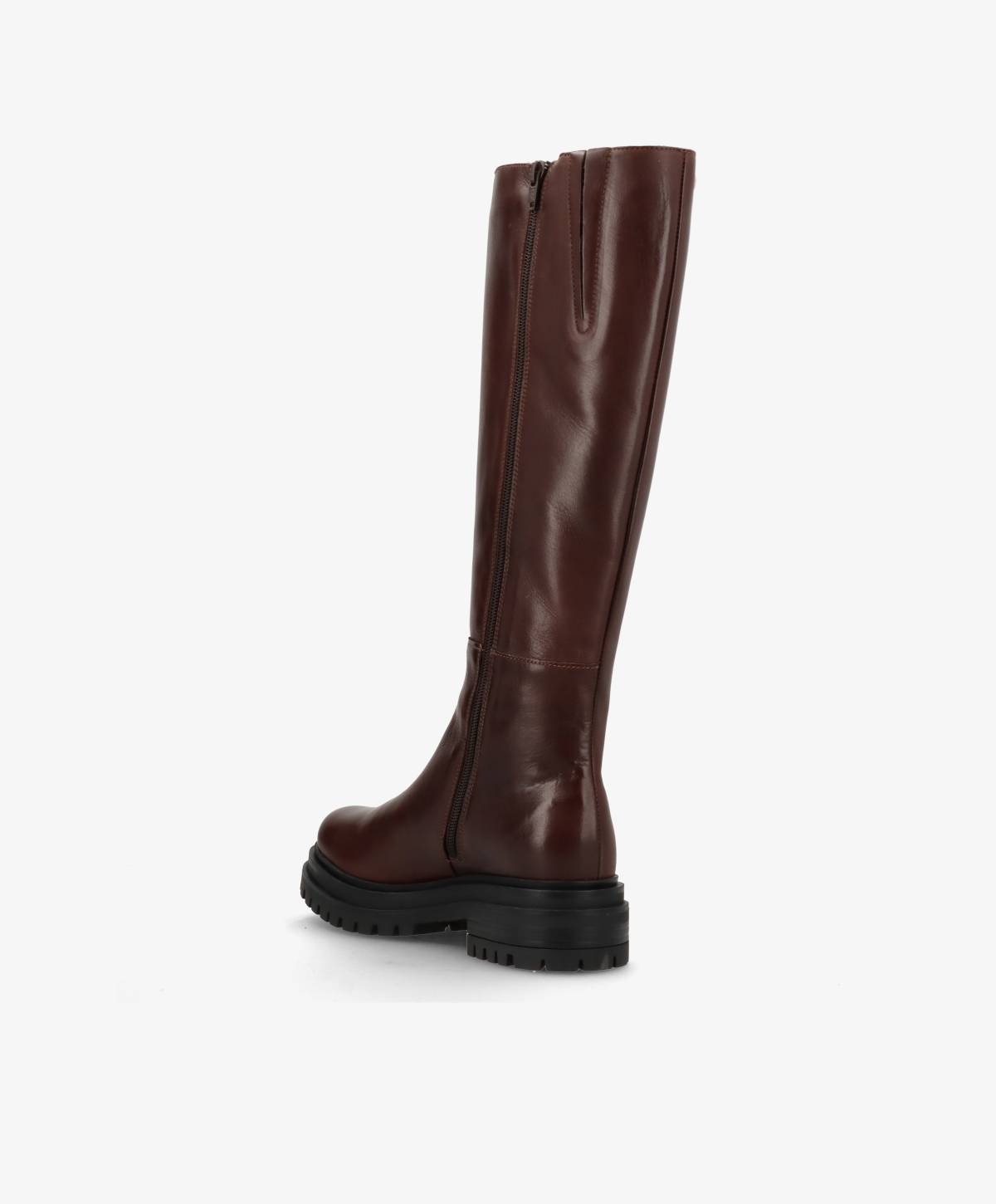 EVEREST er en elegant og tidløs lang støvle i brunt læder, der kombinerer klassisk design med Shoedesign Copenhagens signatur for høj kvalitet og håndværk. Den smukke glød i det lækre læder giver støvlen et eksklusivt udtryk, der patinerer smukt over tid. Den indvendige lynlås gør den nem at tage af og på, og den robuste sål sikrer et godt greb – selv på kolde og glatte dage.