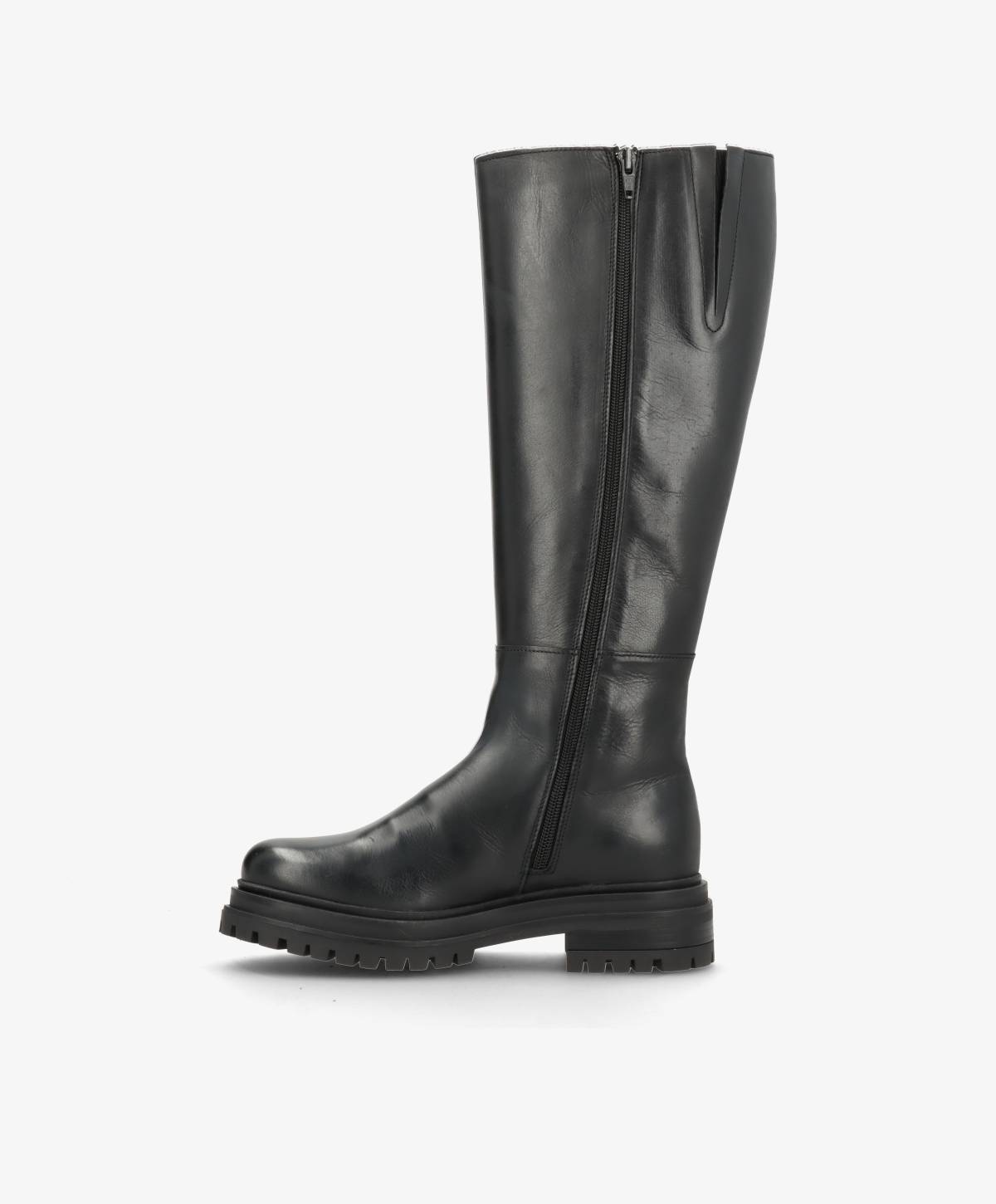 EVEREST er en klassisk lang støvle i sort læder, designet til at kombinere tidløs stil med høj komfort. Den glatte overflade og enkle silhuet giver et elegant udtryk, mens den solide sål og praktiske lynlås i siden gør støvlen både funktionel og behagelig at bære. Den er håndlavet i Europa, hvilket sikrer en eksklusiv kvalitet og et luksuriøst finish.