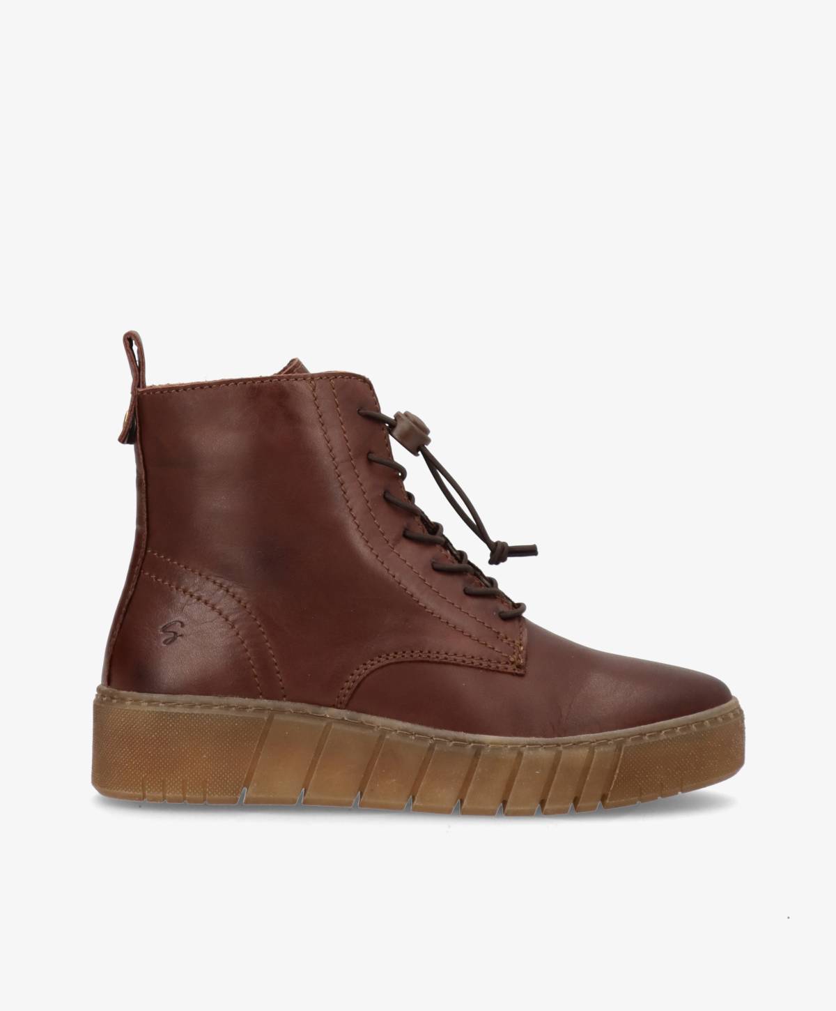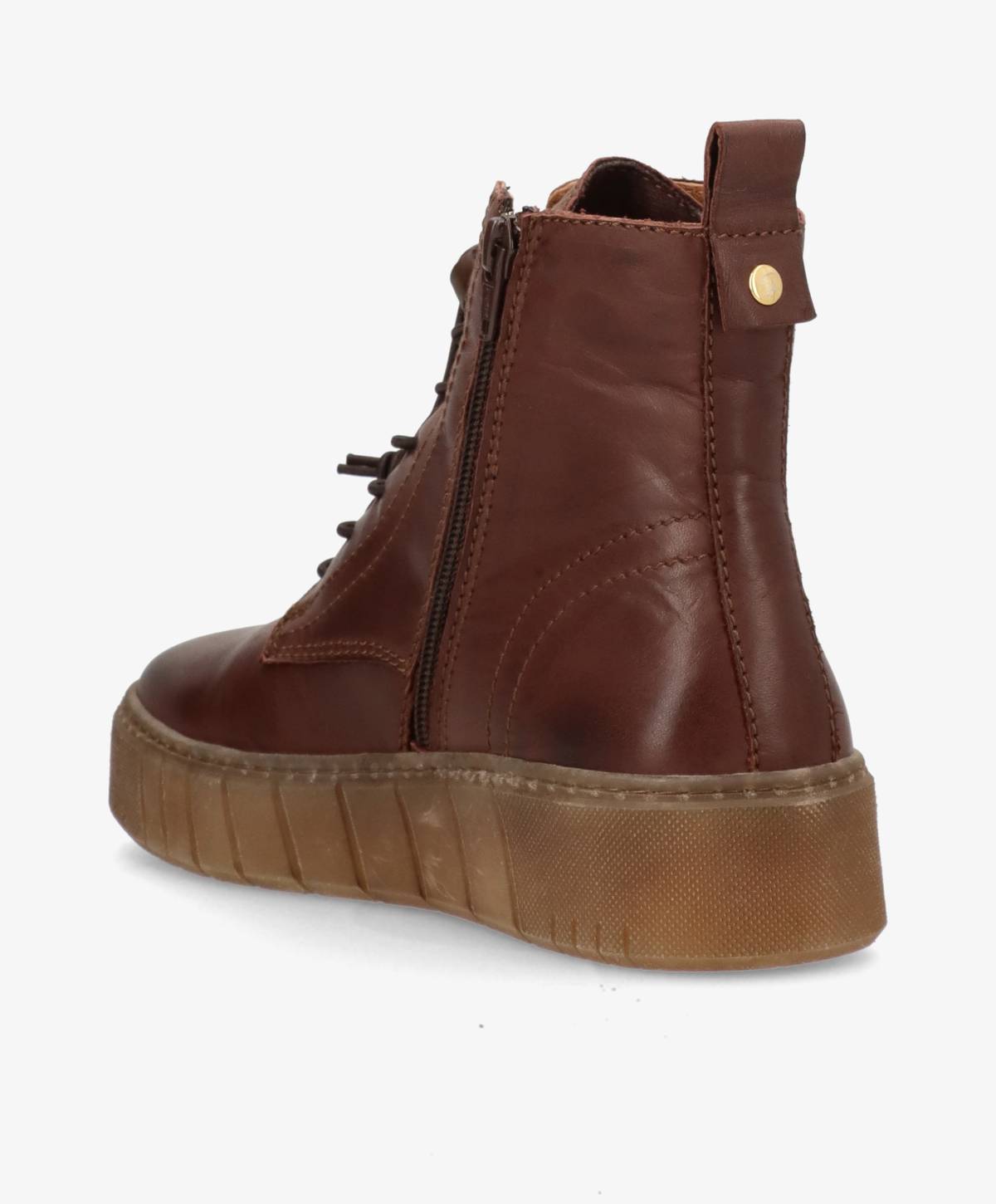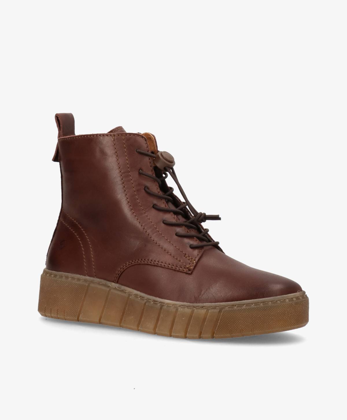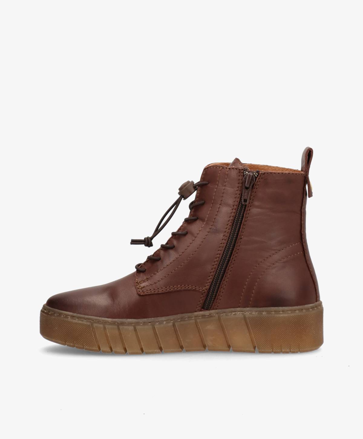 MOOVED LACE i mørkebrun læder fra Shoedesign Copenhagen er et moderne take på den klassiske snørestøvle. Den håndlavede kvalitet kommer til udtryk i det glatte, bløde læder og de raffinerede syninger, mens det let sporty look skabes af den tykke gummisål med rillede detaljer. Snøresystemet er opdateret med elastik og stoplukning, som gør den nem og hurtig at få på.