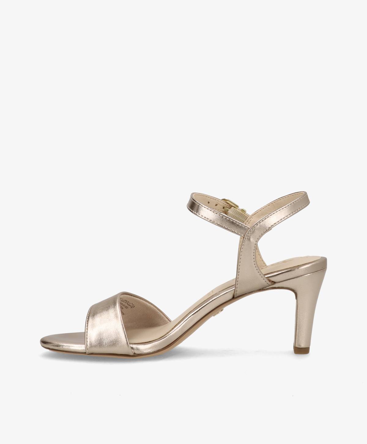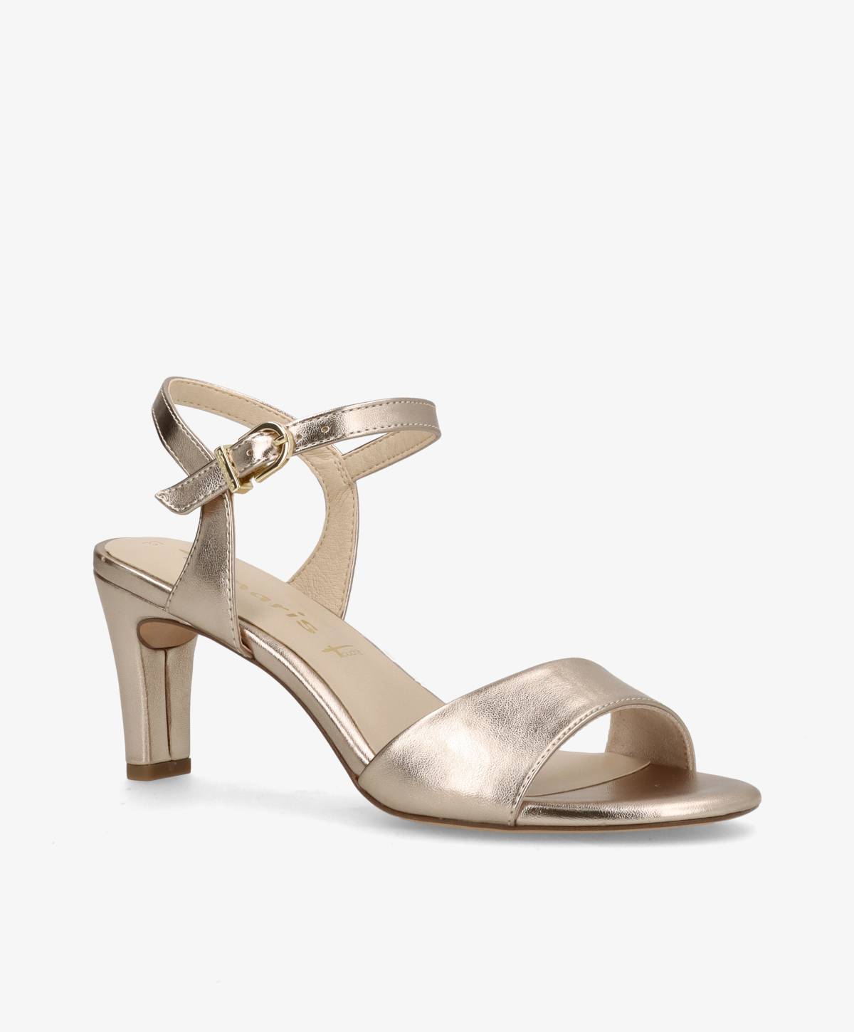 Elegant guldpumps fra Tamaris i et klassisk og stilrent look. Disse pumps er perfekte til hende med den feminine stil, og de er et must til festlooket. De flotte pumps har en hæl på 7 cm, som giver et godt løft. Da hælen er bred, er den desuden komfortabel, så de nemt kan bæres natten lang. Der er en bred, asymmetrisk rem foran samt justerbar ankelrem, som sørger for, at skoen sidder godt til på foden. Den smukke guldfarve giver et eksklusivt touch, som hurtigt gør disse pumps til en favorit i festgarderoben.