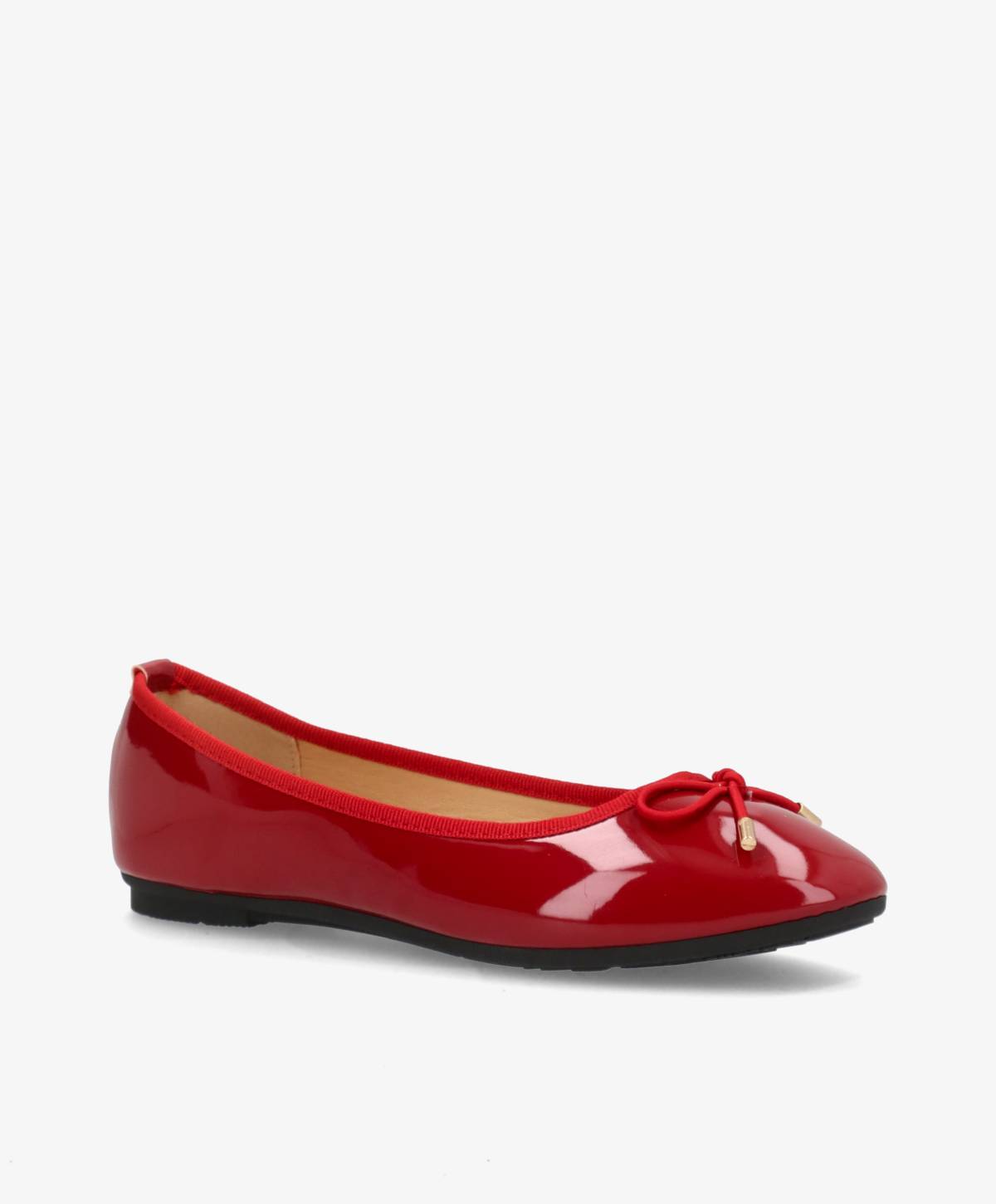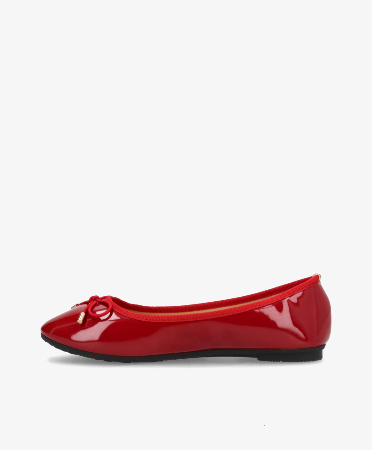 RIOM fra Havanna Shoes er en feminin ballerina sko i glansfuldt, imiteret lak i en smuk bordorød nuance. Modellen har en spids afrundet snude, elastisk kant og en lille dekorativ sløjfe med fine gulddetaljer. Den let polstrede indersål og den bløde ydersål gør skoen behagelig at have på hele dagen.