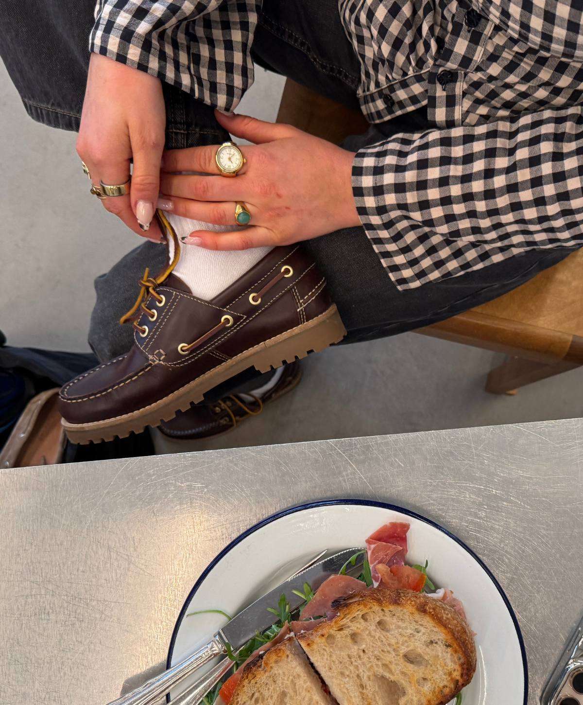 RUDDER X i brunt læder kombinerer klassisk elegance med en moderne, robust stil. Det glatte læder og de fine kontrastsyede detaljer skaber et luksuriøst udtryk, mens de gyldne metaløjer og lædersnørebånd fuldender det eksklusive look. Den kraftige gummisål giver solidt fodfæste og komfort, hvilket gør denne sko perfekt til både byliv og outdoor-eventyr.