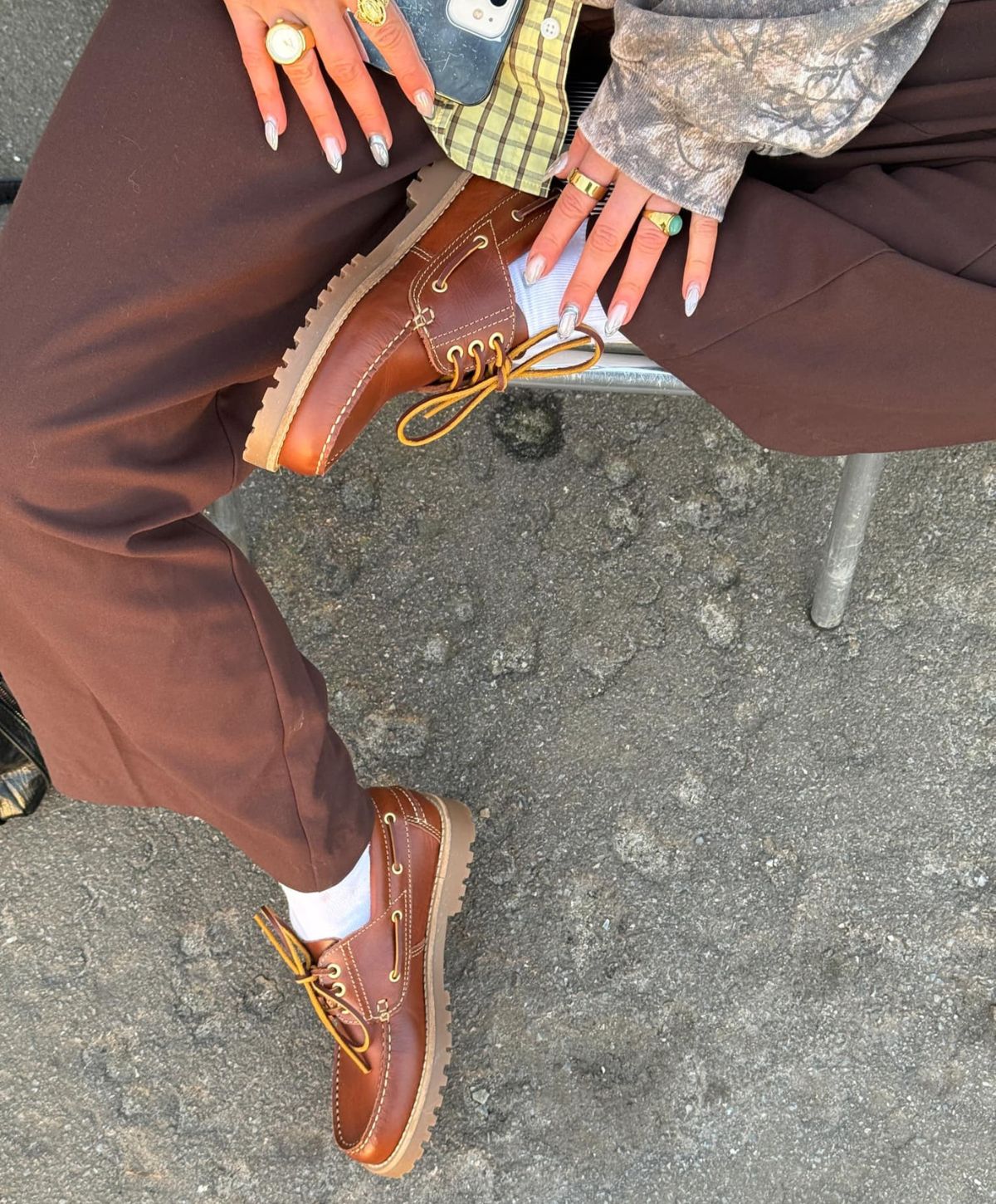 Løft din stil med RUDDER X i mellembrun læder, en perfekt fusion af klassisk elegance og funktionalitet. Det høj-kvalitets glatte læder giver et raffineret look, mens de kontrastfarvede syninger tilføjer et eksklusivt touch. De messingfarvede metalringe og lædersnørebånd understreger skoens luksuriøse udtryk, samtidig med at de giver en sikker pasform.