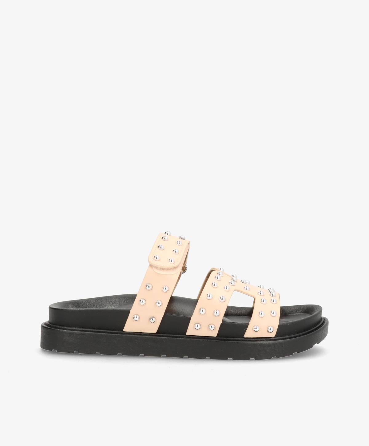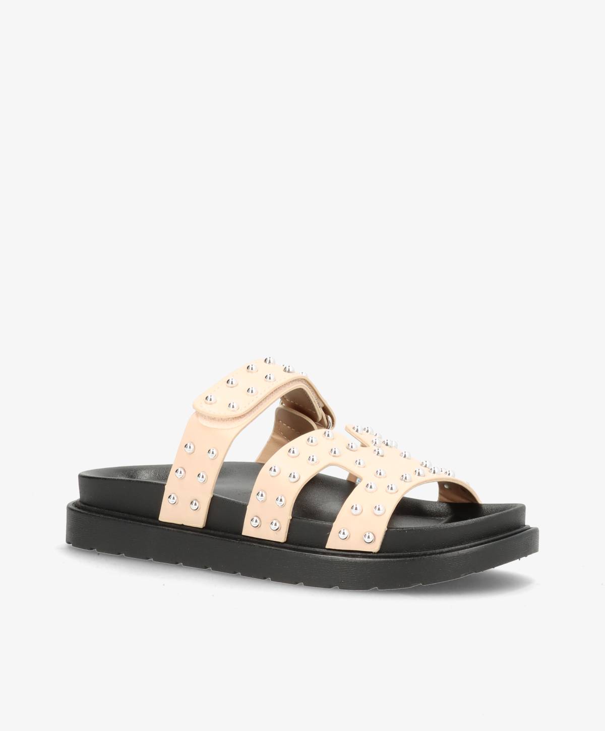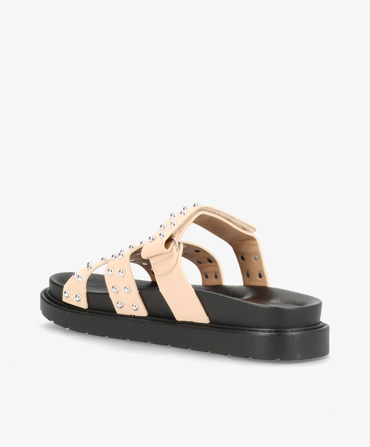 De fineste sandaler i en klassisk beige med flotte detaljer. Sandalerne har nitter på remmene, som er med til at give et råt touch til det tidløse design. Med de mange remme sidder de godt til på foden, og der er desuden en justerbar rem over foden.