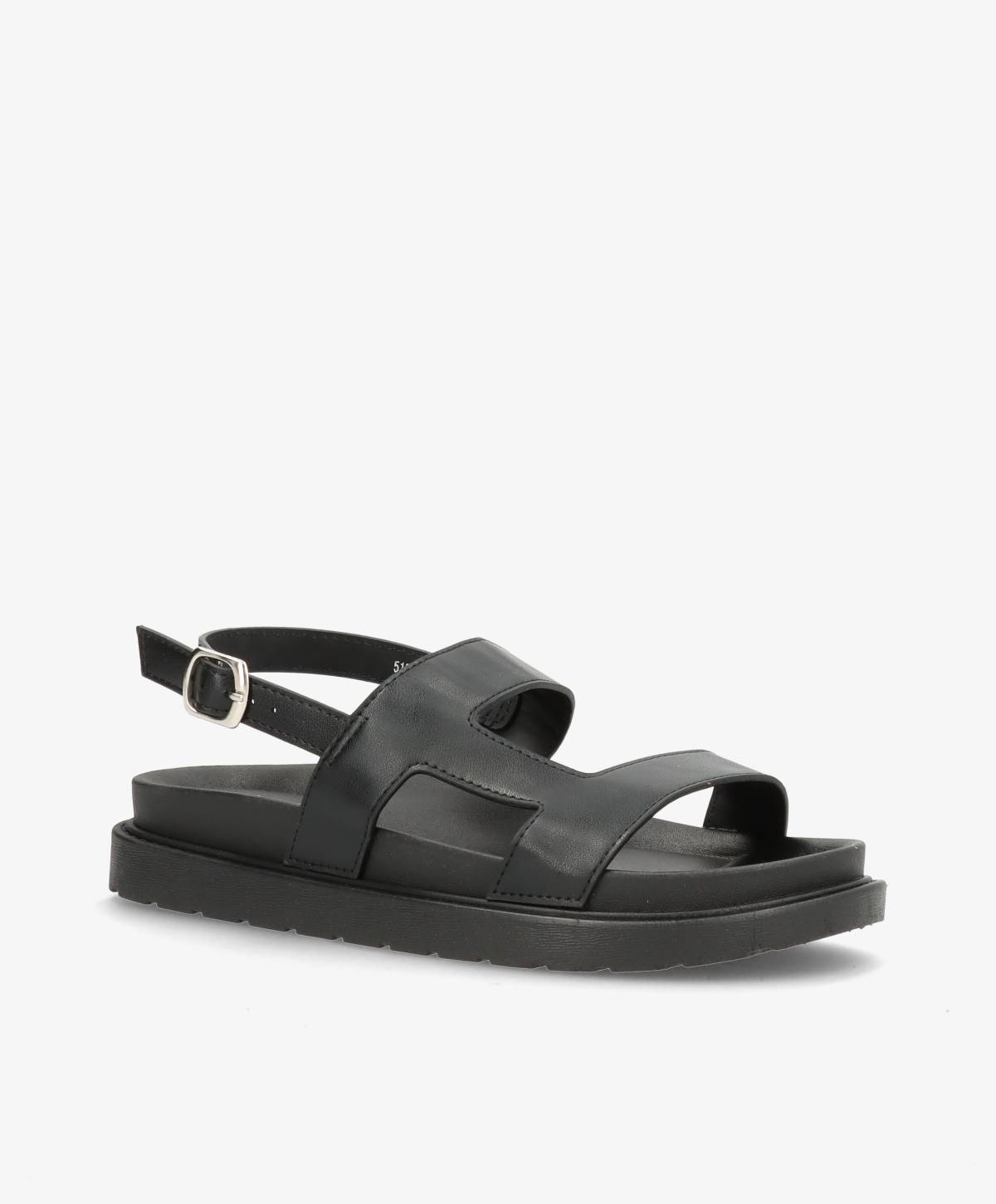 Elegante sandaler i en klassisk sort med flotte detaljer. Sandalerne er perfekte til hende, der ofte er på farten og det tidløse look, gør dem super nemme at style. De har flere remme, så foden sidder godt til, og de lukkes med justerbar ankelrem om anklen.