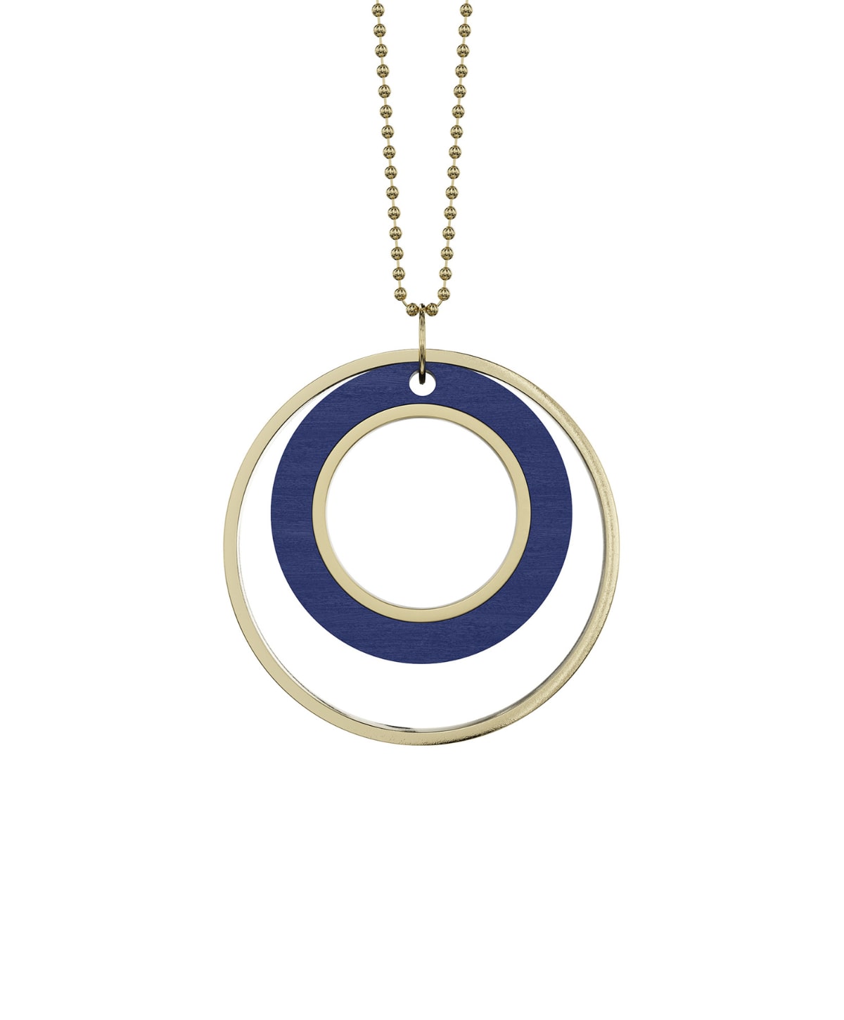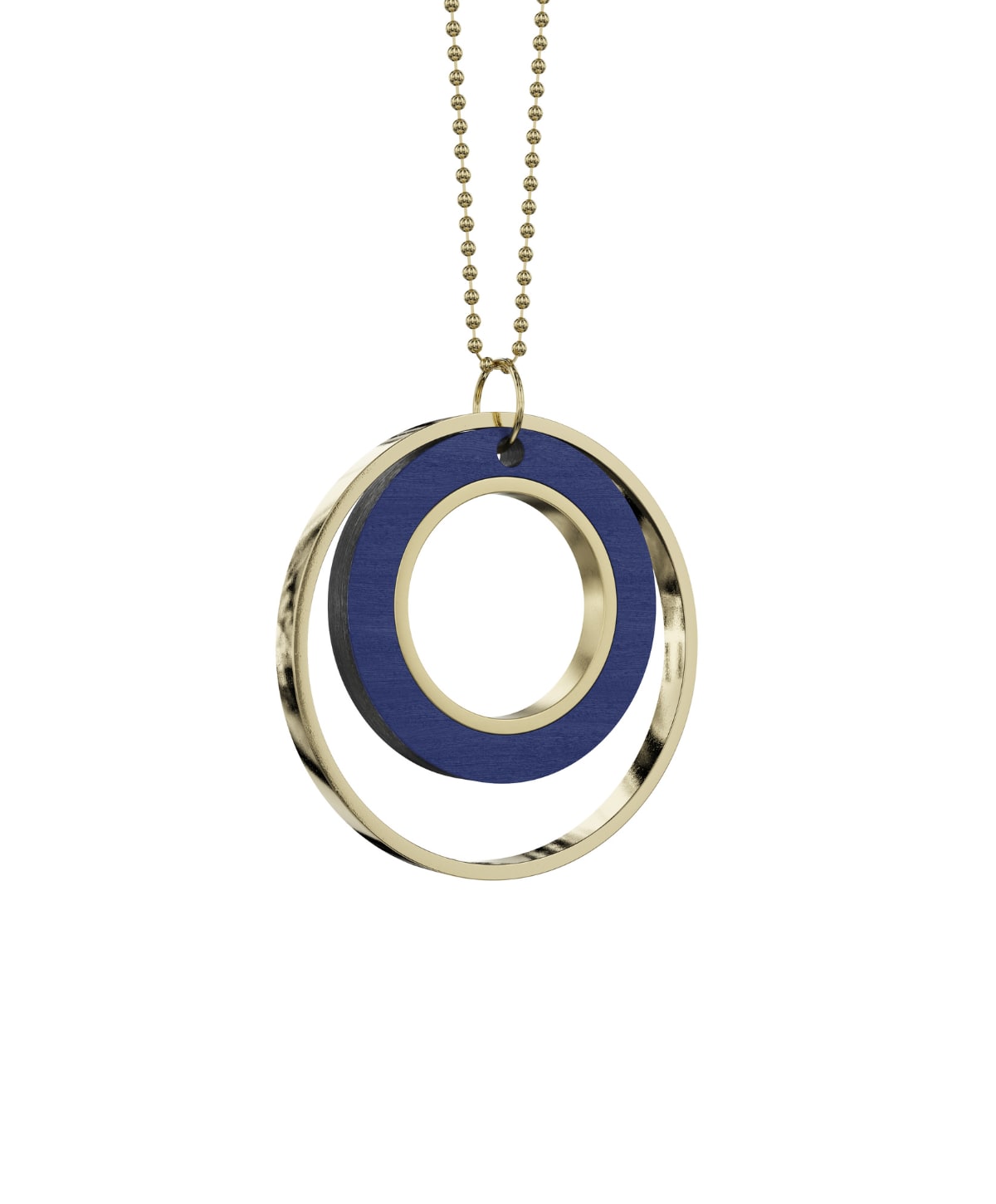 Smuk halskæde fra Grundled lavet i farvet træ og forgyldte detaljer. Halskæden lukkes bagtil med lås og er udført i nikkelfri metal. Halskæden måler desuden omkring 40 cm fra lås til bunden af vedhænget.