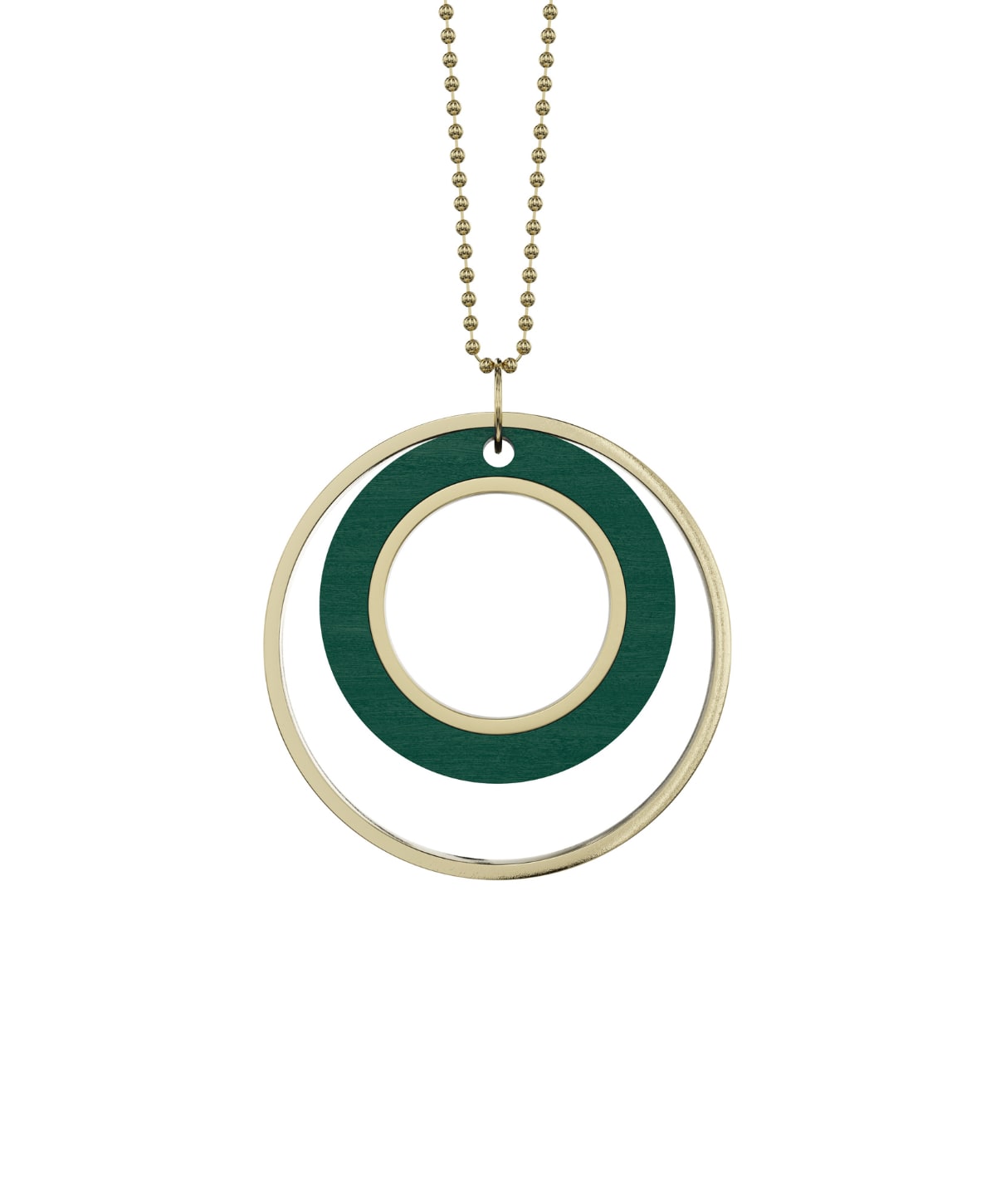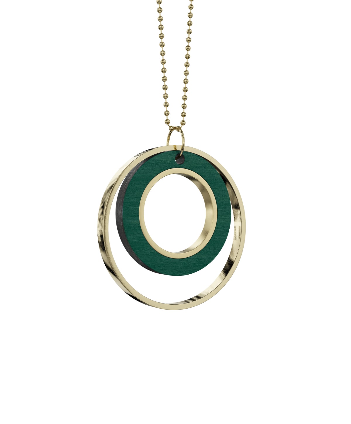 Smuk halskæde fra Grundled lavet i sortmalet træ og forgyldte detaljer. Halskæden lukkes bagtil med lås og er udført i nikkelfri metal. Halskæden måler desuden omkring 40 cm fra lås til bunden af vedhænget.