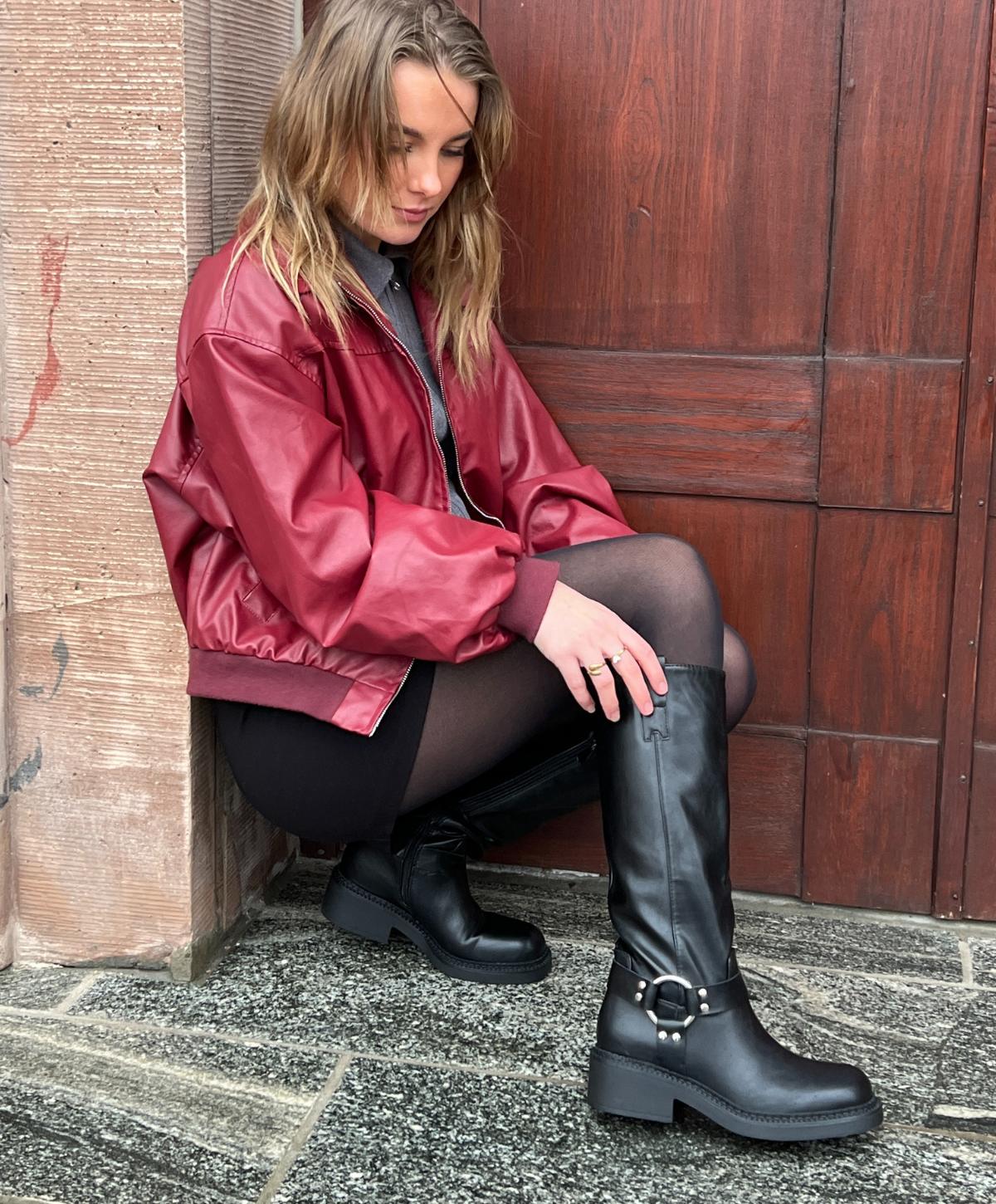 Her får du en lang og elegant støvle, der kombinerer lækkert sort materiale, stilrene detaljer og komfort til hele dagen. YAS støvlen er designet med en klassisk biker-inspireret rem og metallisk ringdetalje, som giver et moderne udtryk uden at blive for rå. Den solide hæl og den stabile ydersål gør støvlen perfekt til både hverdagsbrug og mere dressed-up looks.